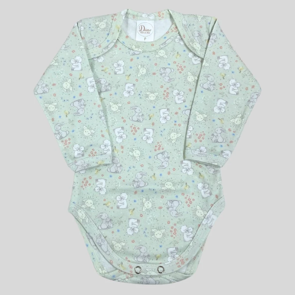 Body longo para bebê em suedine algodão egípcio com estampa coelho Verde