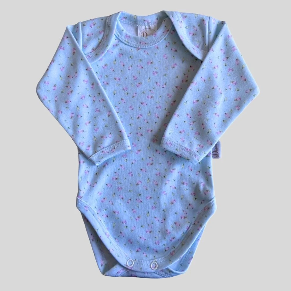 Body longo para bebê em suedine algodão egípcio com estampa flor Lilás