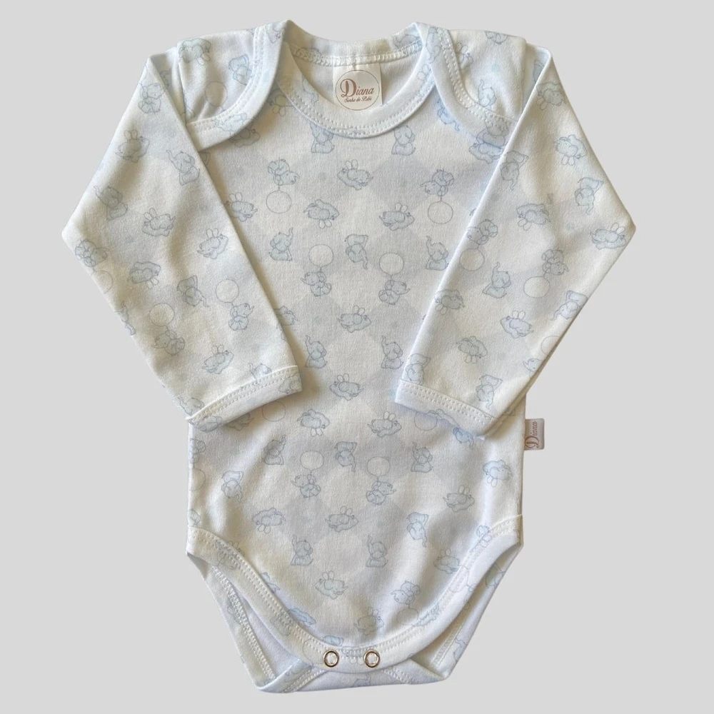 Body longo para bebê prematuro em suedine algodão egípcio estampa Elefante Azul