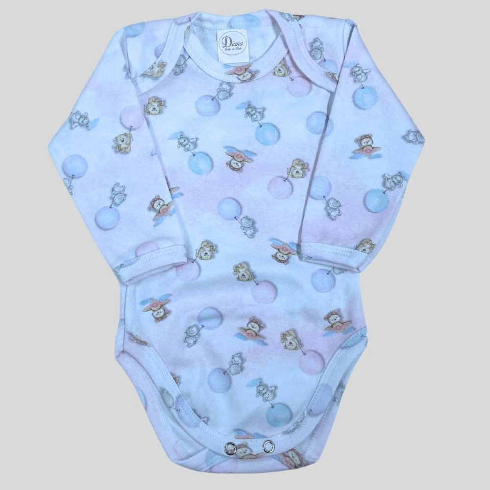 Body longo para bebê prematuro em suedine algodão egípcio estampa Urso Aviador Azul