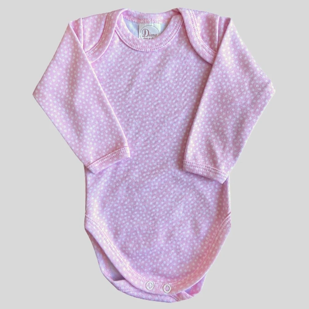 Body longo para bebê prematuro em suedine algodão egípcio estampa poá Rosa