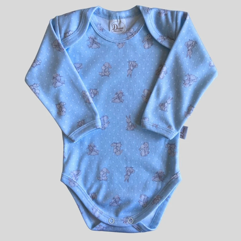 Body longo para bebê prematuro suedine algodão egípcio estampa coelho Azul