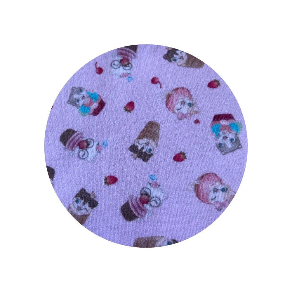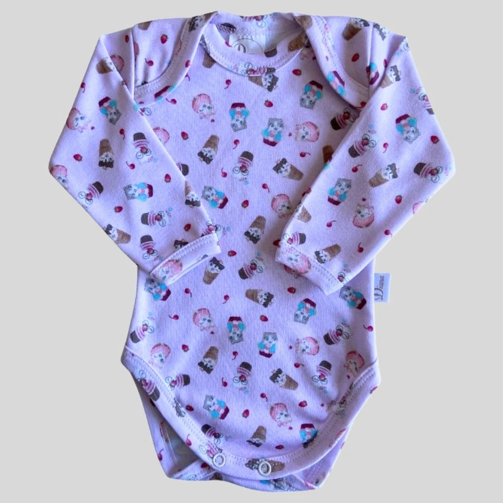 Body longo para bebê prematuro suedine algodão egípcio estampa cupcake Lilás
