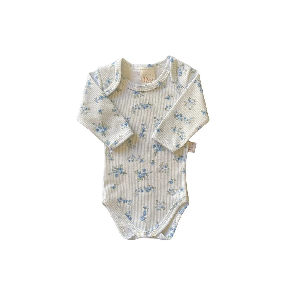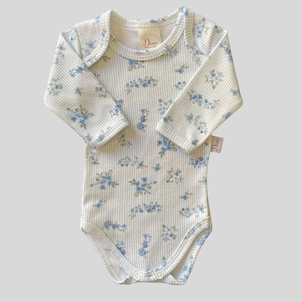 Body longo para bebê transpassado em suedine algodão egípcio estampa floral Azul