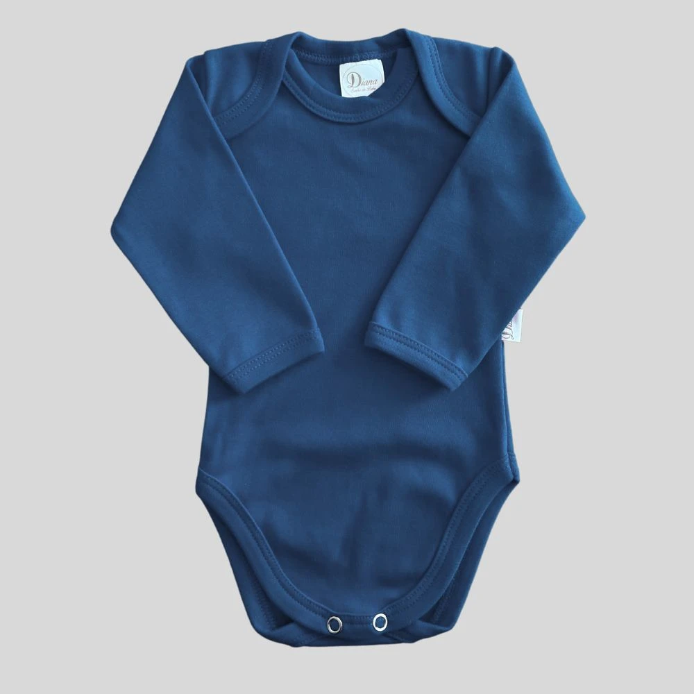 Body longo transpassado para bebê em suedine algodão egípcio Azul Escuro