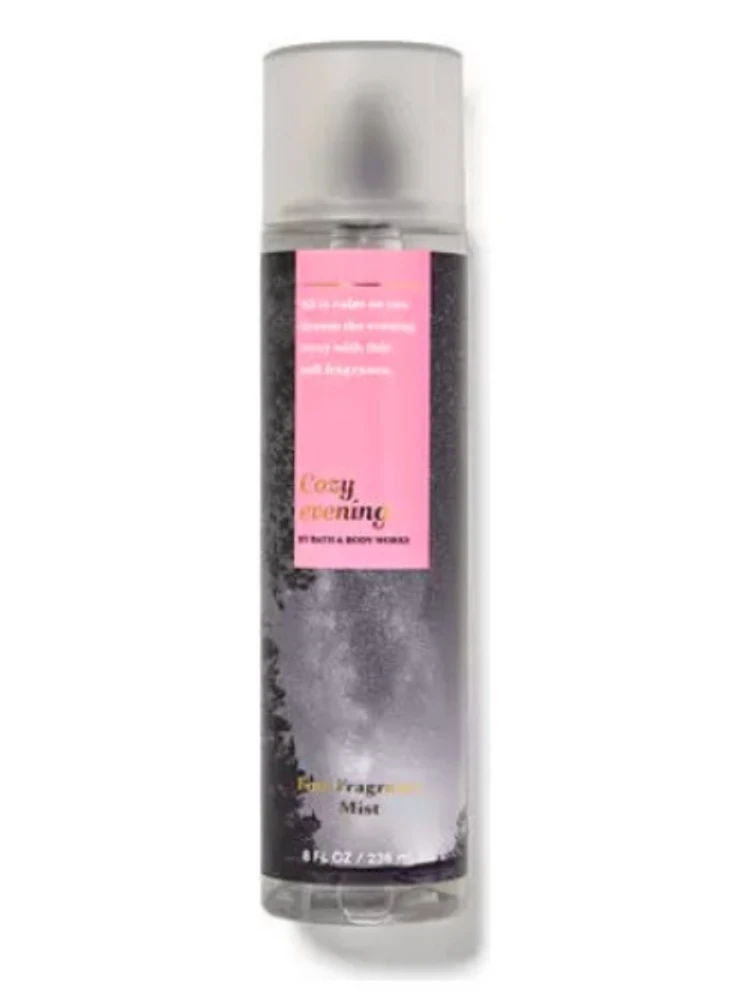 O produto exibido é o Body Spray Cozy Evening da Bath & Body Works, conforme indicado no rótulo da embalagem.