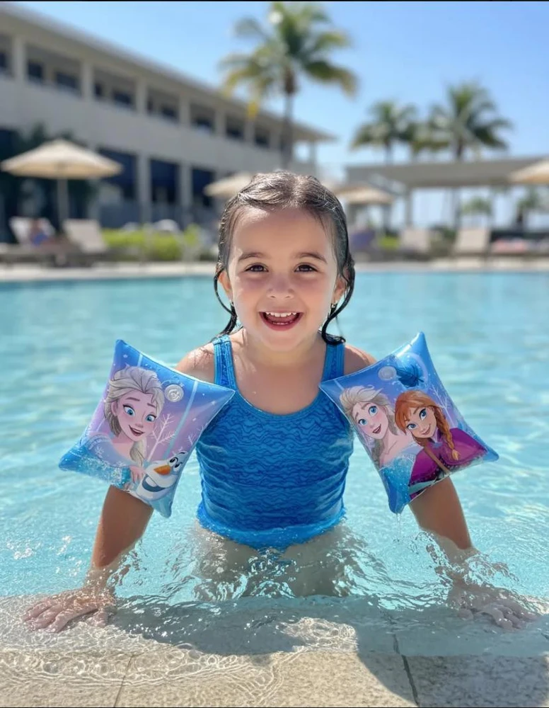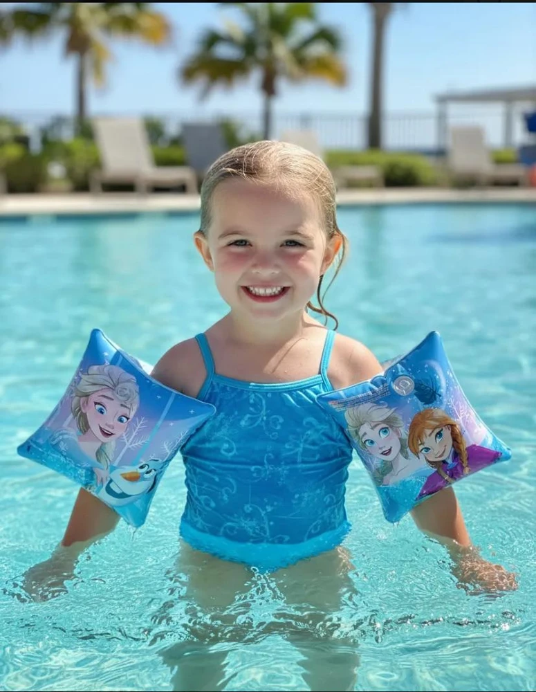 Proporcione momentos inesquecíveis e seguros para sua filha com a boia de braço Frozen, item essencial para diversão aquática com proteção garantida. Ideal para uso em piscinas, praias e clubes.