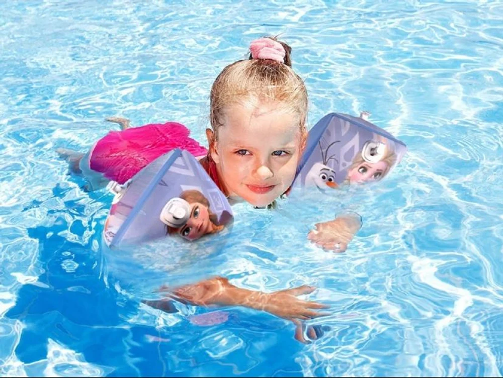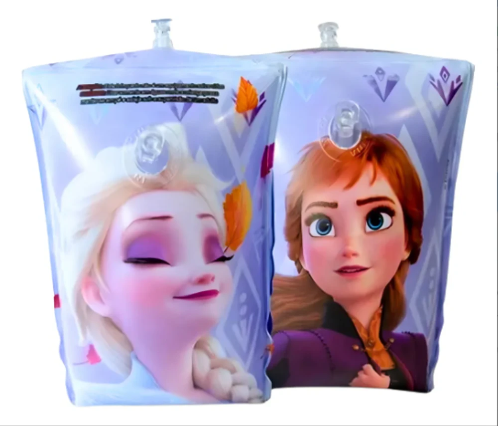 Boia de braço inflável infantil Frozen para meninas, perfeita para garantir a segurança e diversão das crianças na piscina. Com design exclusivo dos personagens Elsa, Anna e Olaf, esse acessório infantil é ideal para estimular o aprendizado da natação com mais confiança e conforto. Feita em material resistente e confortável, oferece fácil inflagem e ajuste seguro nos braços das crianças.