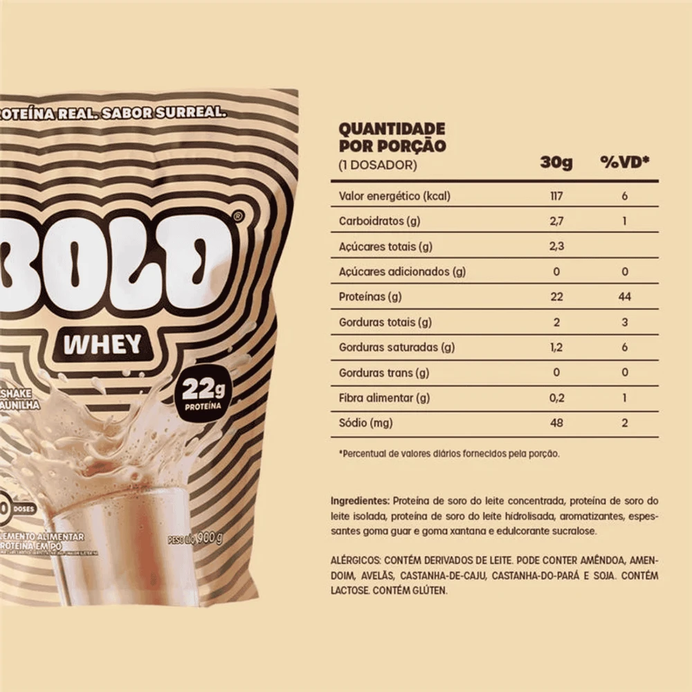 Bold Whey Baunilha é o coringa da sua rotina!Com sabor suave e versátil, ele combina com qualquer receita e agrada todos os paladares.São 22g de proteína por dose (30g), disponíveis em embalagens de 900g