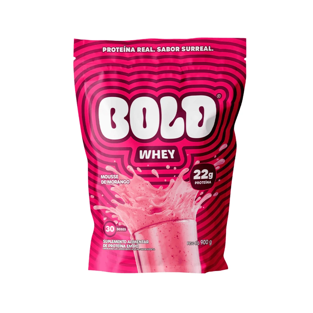 Bold Whey Mousse de Morango é diferente de tudo que você já experimentou!Cremoso, levemente cítrico e com aquele sabor que lembra uma deliciosa torta de morango.São 22g de proteína por dose (30g) em uma embalagem de 900g pra transformar sua rotina com muito mais sabor!