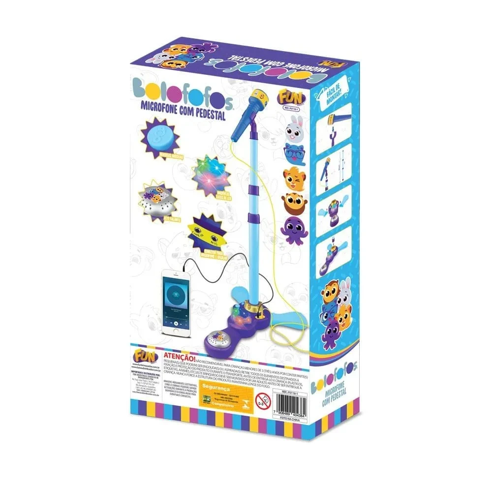 O Bolofos Microfone com Pedestal da Fun transforma qualquer momento em um verdadeiro show de diversão. Com luzes de LED coloridas que iluminam a apresentação, alto-falante com diversas músicas e conectores para microfone e celular, as crianças podem soltar a voz e criar performances animadas, desenvolvendo a autoconfiança, a criatividade e a coordenação motora. Ideal para momentos de brincadeira em casa ou com amigos, proporcionando entretenimento interativo e cheio de alegria.