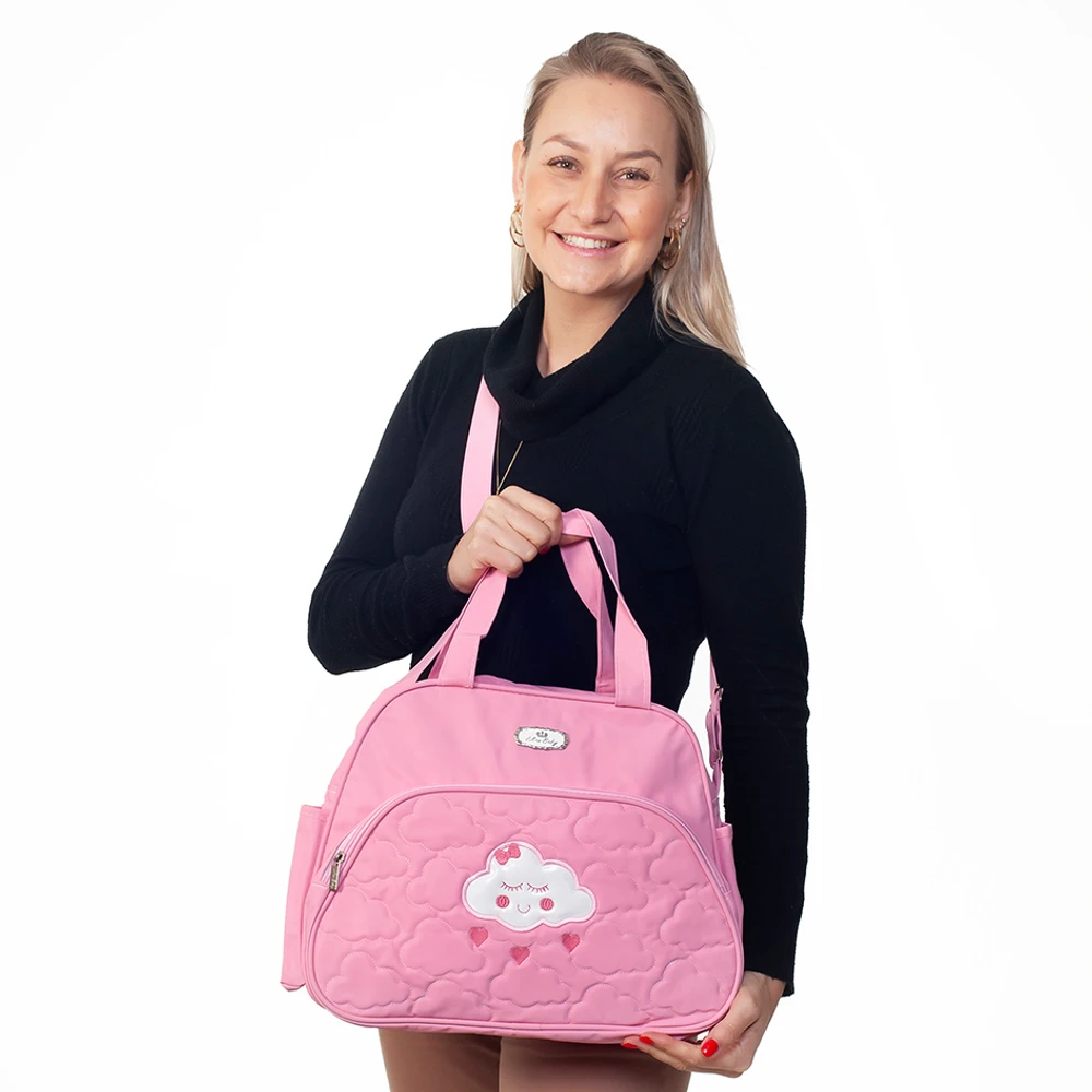 BOLSA BEBÊ MATERNIDADE ROSA NUVEM - GRANDE MENINA