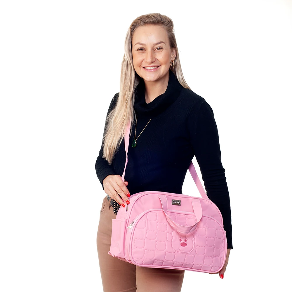 BOLSA BEBÊ MATERNIDADE ROSA URSO - GRANDE MENINA