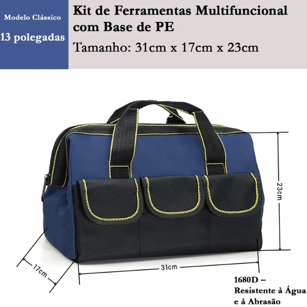 Organização e resistência para o dia a dia! A Bolsa Multifuncional 13” é perfeita para armazenar e transportar suas ferramentas com segurança, praticidade e durabilidade. Compacta por fora, espaçosa por dentro!