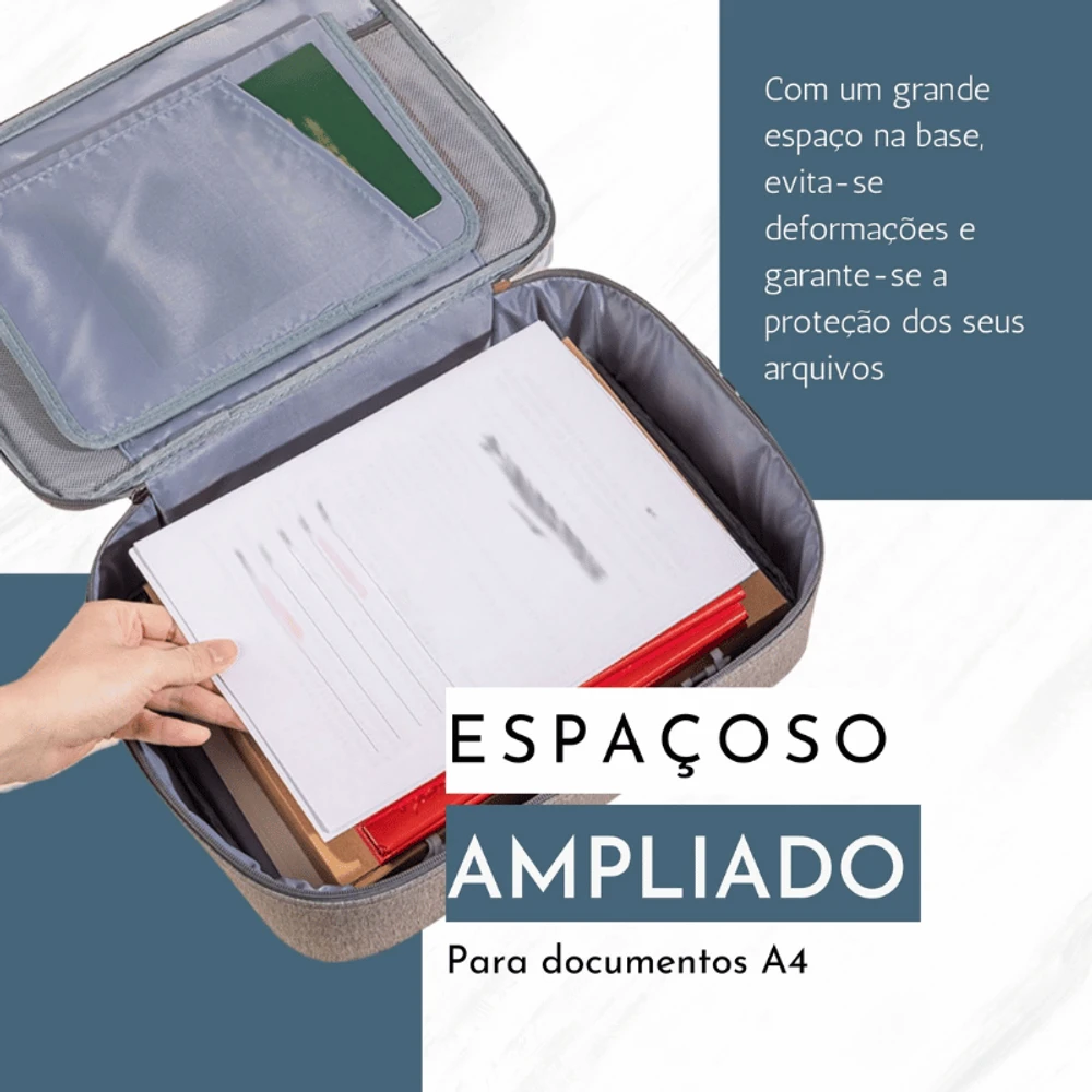 Alta capacidade de armazenamento – comporta documentos, contratos, passaportes, cadernos, entre outros;