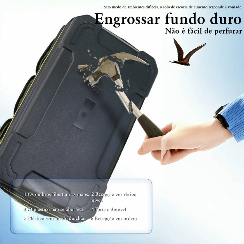 Leve todas as suas ferramentas com segurança, praticidade e máxima organização! A Bolsa GG de 23” oferece amplo espaço interno, estrutura reforçada e base de borracha que garante estabilidade mesmo em ambientes de trabalho exigentes.