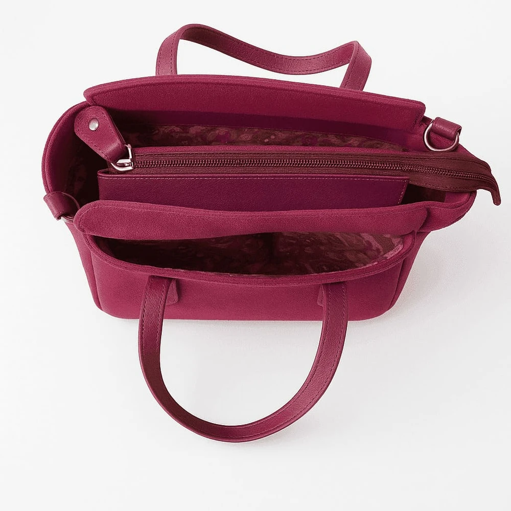 - Alças estruturadas: conforto para carregar na mão ou no antebraço