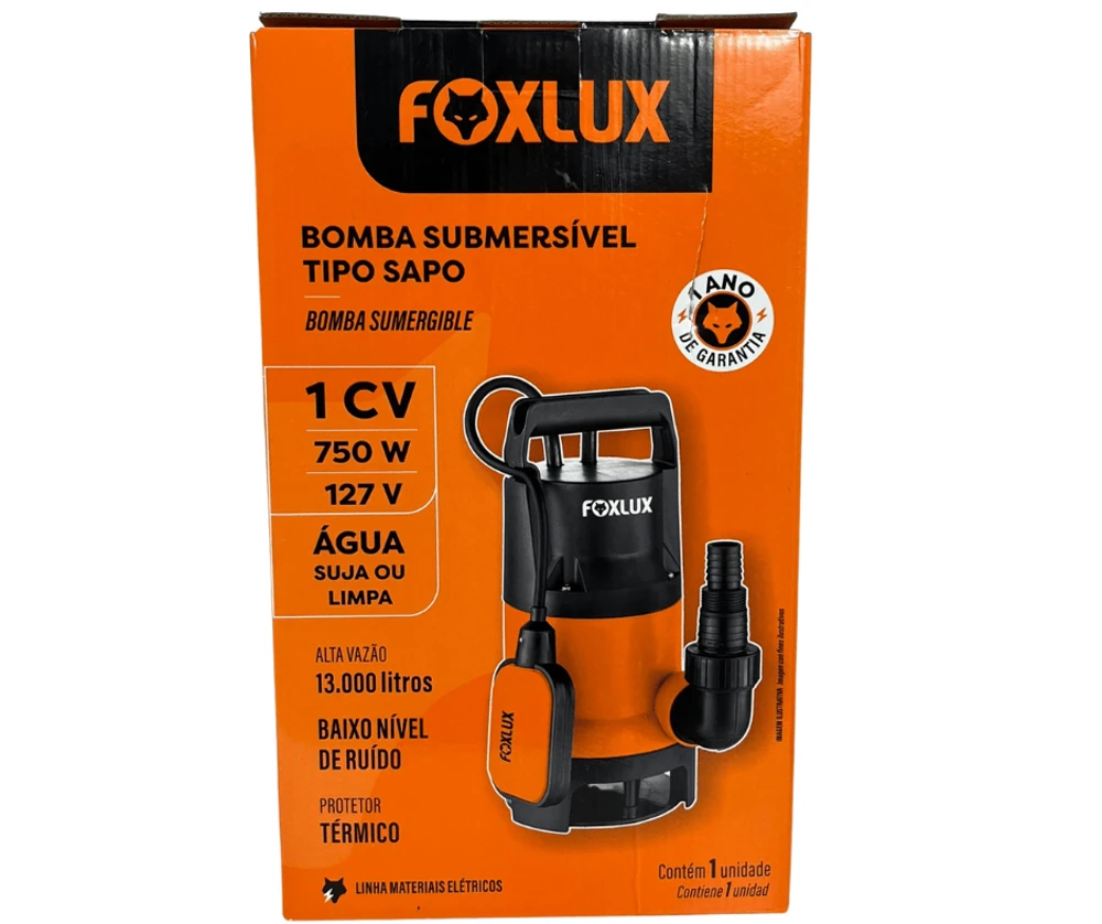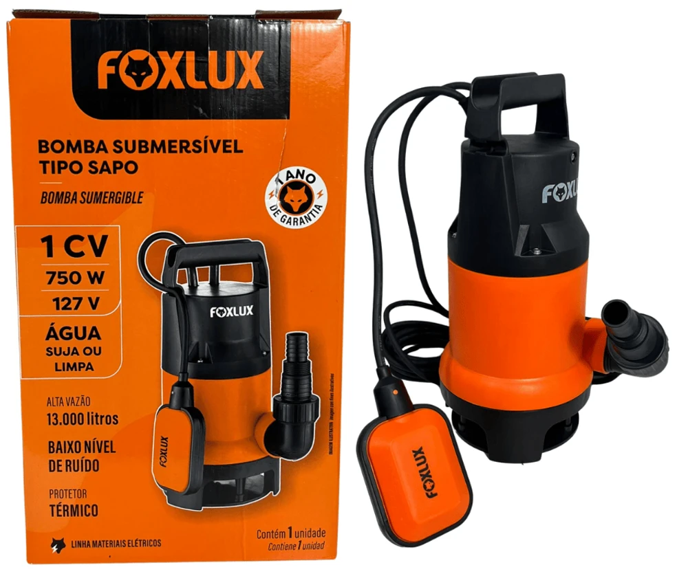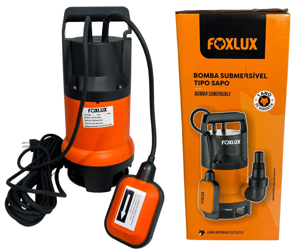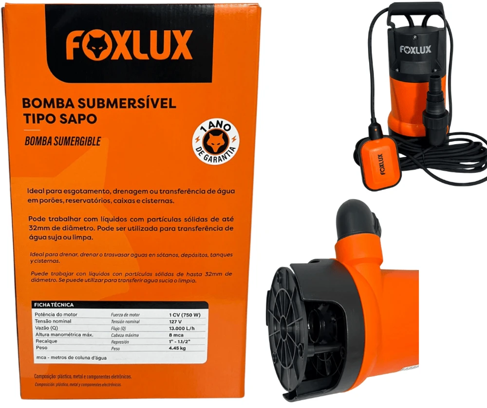 A Foxlux é uma marca reconhecida pela confiabilidade e qualidade dos seus produtos. A bomba submersível possui um dos maiores cabos de energia da categoria (8 metros), boia com sensor de nível automático para monitoramento fácil, e é projetada para operar silenciosamente. Tudo isso garante um ótimo desempenho e durabilidade.