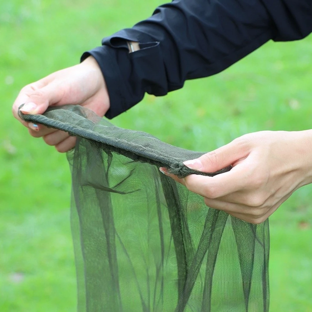 1. A rede mosquiteira é feita de náilon com um elástico na parte inferior, respirável e boa para evitar insetos e insetos no pescoço do rosto.