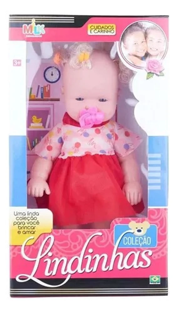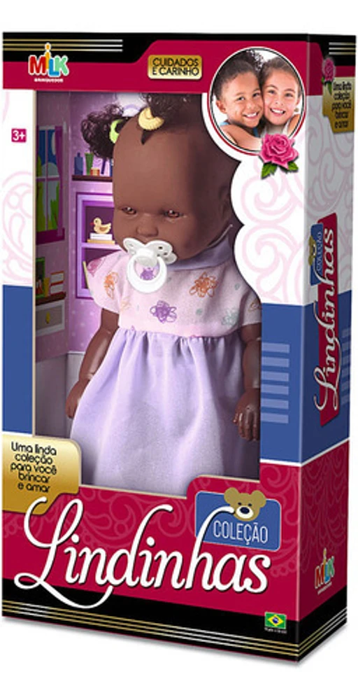 A City Toys tem a missão de garantir a satisfação total dos nossos clientes. Visando satisfazer e buscar melhorar a cada dia, focando na qualidade do atendimento, na variedade de produtos e no preço justo.A empresa oferece uma extensa variedade de produtos, cuidadosamente selecionados entre os melhores fabricantes nacionais e importados do mercado, a fim de proporcionar a todos os clientes momentos de alegria, bem estar, desenvolvimento cognitivo e principalmente diversão.Caso tenha algum problema após a compra, conte sempre com a nossa equipe de pós-venda para solucioná-lo.DESCRIÇÃO DO PRODUTO:Coleção Lindinha Baby com Xuxinha e Chupeta - MilkBoneca Lindinha Baby da Milk Brinquedos, possui doçura e carinho no olhar. Se existe uma boneca fofa, macia e adorável essa é ela! Disponível nas versões branca e negra, a criançada vai amar!! Dois modelos de bebês com roupinhas para colecionar, abraçar e apertar, seus filhos vão adorar!VEM COM CHUPETA E XUXINHA!!OBS: Cabeça feita em vinil macio (borracha), restante do corpo em plásticoDetalhes do Produto:Conteúdo Embalagem: 01 Boneca + Chupeta + XuxinhaTamanho da Boneca: 33cm de altura.Idade Recomendada: a partir de 3 anosCaracterísticas:Dimensões da Embalagem (C x L x A): 41 x 23 x 10 cmReferência: 605 (branca) e 606 (negra)Material: Plástico, Tecido e VinilMarca: Milk Brinquedos.Certificação do INMETRO: 001518/2019 - OCP 0006BENEFÍCIOS:Estimula a Interação Entre Pais e Filhos, desenvolve a distinção de formas e cores, a comunicação, a coordenação motora, a interação social e cultural...brincando desenvolve-se a criança num todo!AVISO: Todas as informações divulgadas são de responsabilidade exclusiva do fabricante/fornecedor. As cores dos tecidos e produtos podem variar entre as imagens mostradas acima ou fotos da embalagem. Imagens meramente ilustrativas.