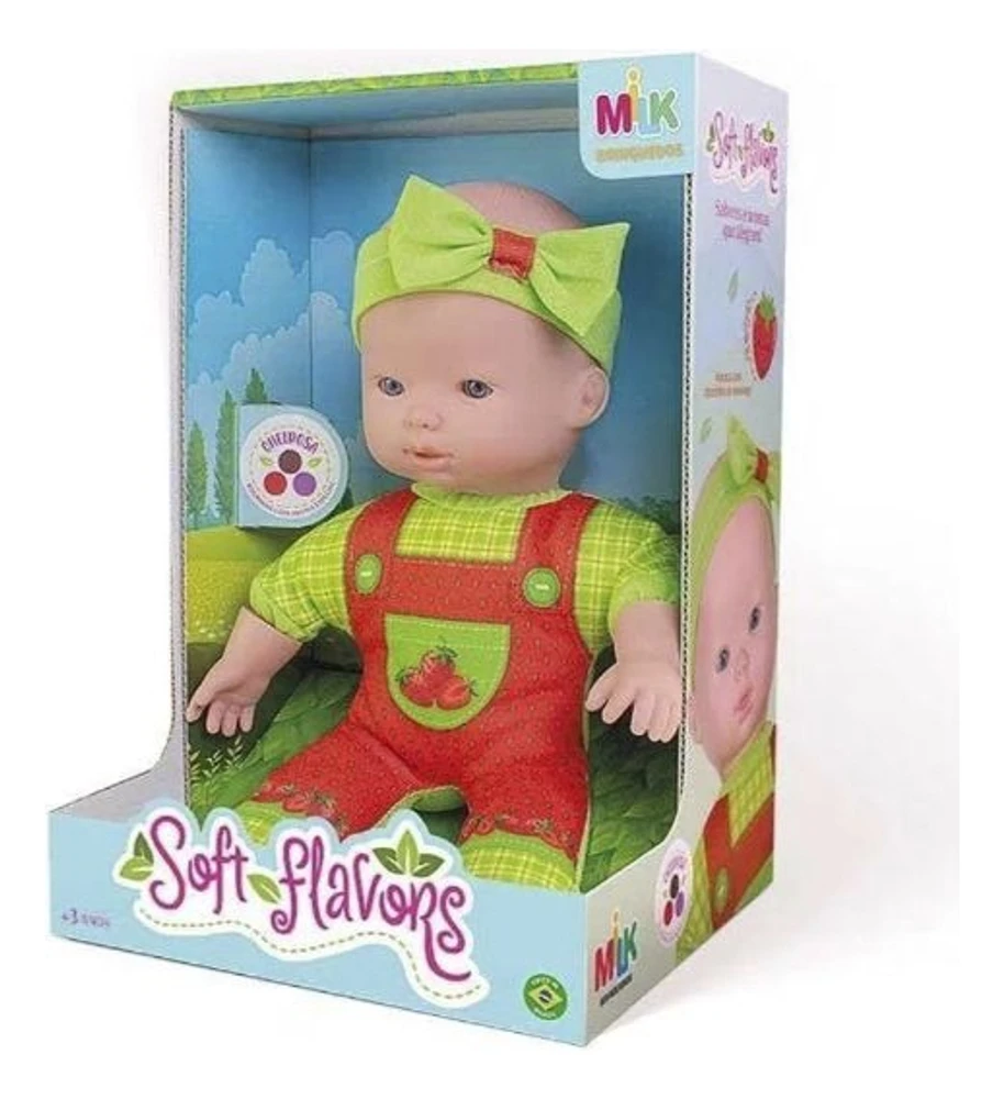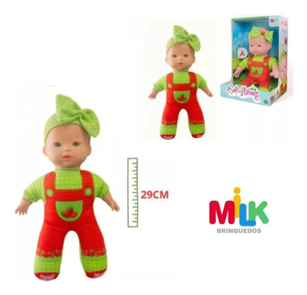 Linda boneca com o corpinho macio e cheiroso, vários modelos para colecionar.Sabores e aromas que alegram, as crianças vão adorar.Cheirinho de Morango.Especificações: Material: Enchimento de fibra, tecido e vinil Medidas aproximadas: 30 x 15 cm Idade Recomendada: + 03 anos.Marca: Milk BrinquedoSegurança: Inmetro