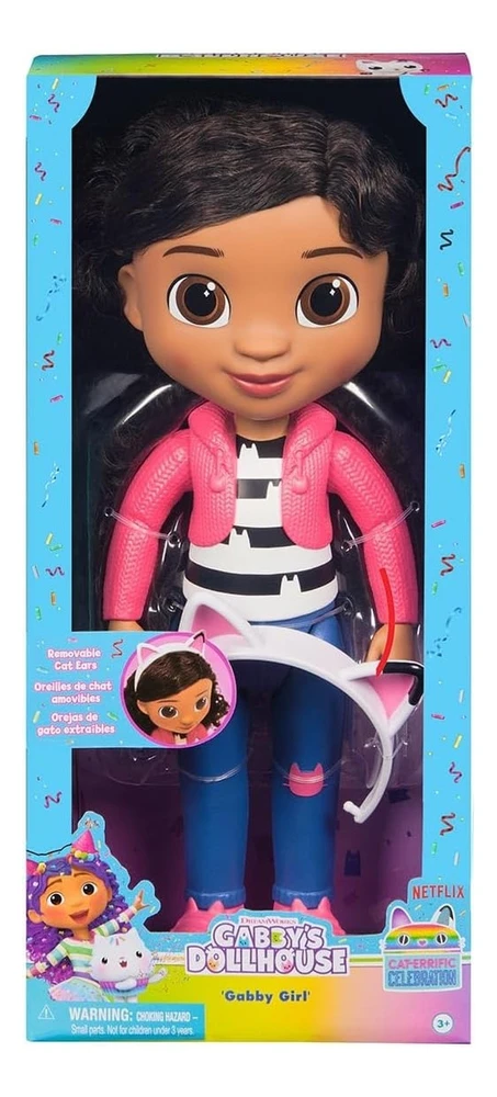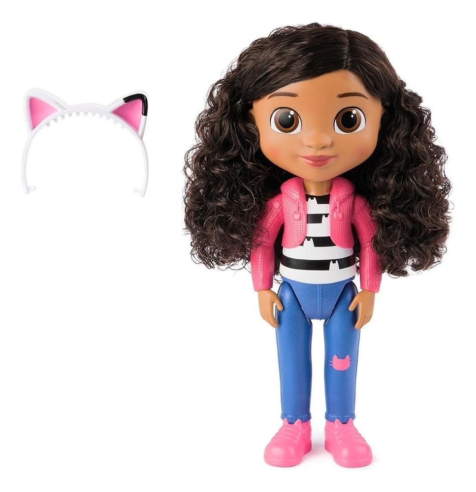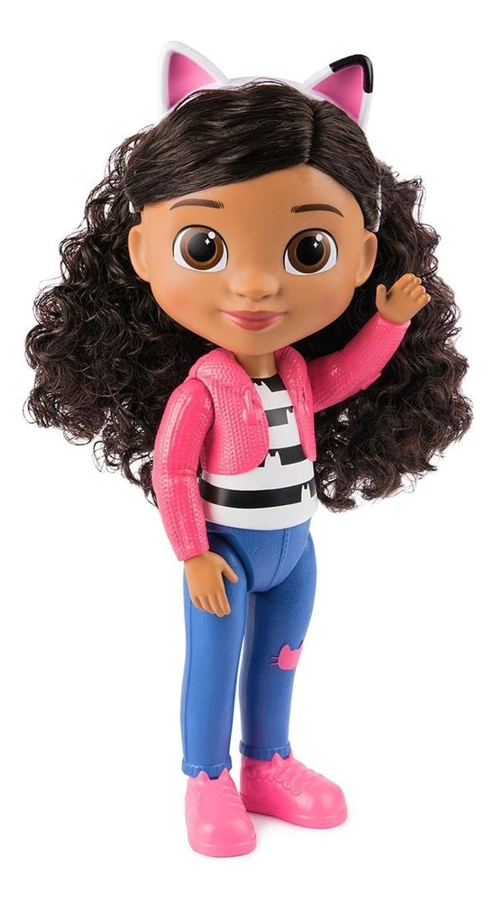 A Boneca Gabby, referência 3974, é inspirada na série "Gabby's Dollhouse" e possui 33 cm de altura. Ela vem com uma tiara e detalhes que remetem ao mundo mágico da série, permitindo que as crianças se sintam parte desse universo encantador.