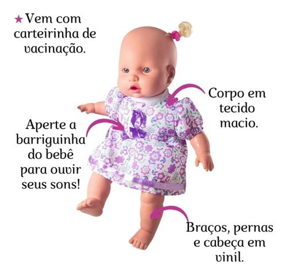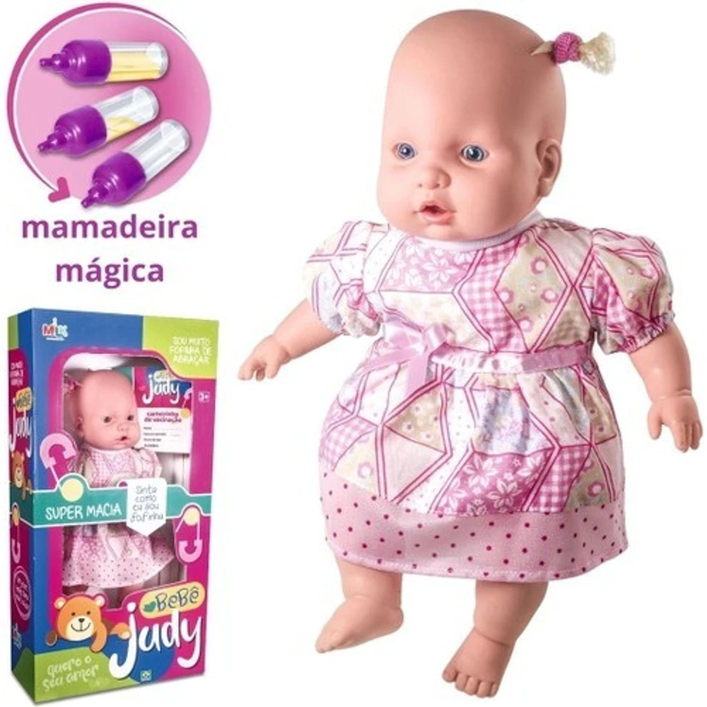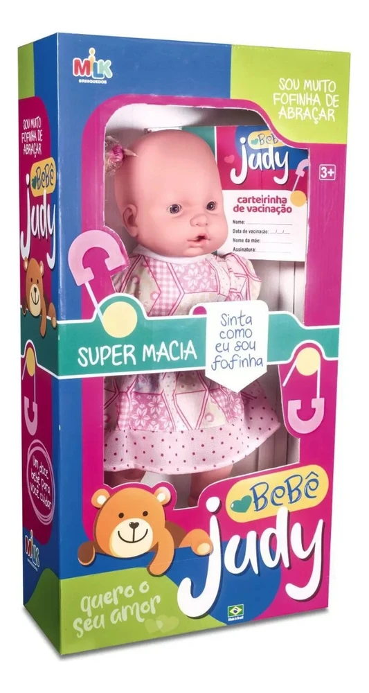 Uma amizade fielA partir de hoje, toda criança será acompanhada por alguém incondicional, capaz de transformar o mundo em um lugar encantador.Personagens inesquecíveisCom Judy, as experiências das crianças serão incríveis! Seu design favorece a criatividade e a imaginação.Uma linda boneca de altíssima qualidade.O corpo é feito de pano com enchimento macio.Bebê Judy acompanha carteirinha de vacinação e uma mamadeira magica para a brincadeira ficar ainda mais legal, voce vira a mamadeira e o leitinho desaparece como magica!Especificações:Fabricante: Milk BrinquedosModelo: 468Composição: Vinil, tecido, plásticoAltura da boneca: 43 cm
