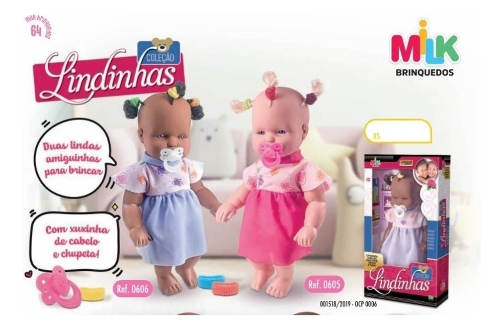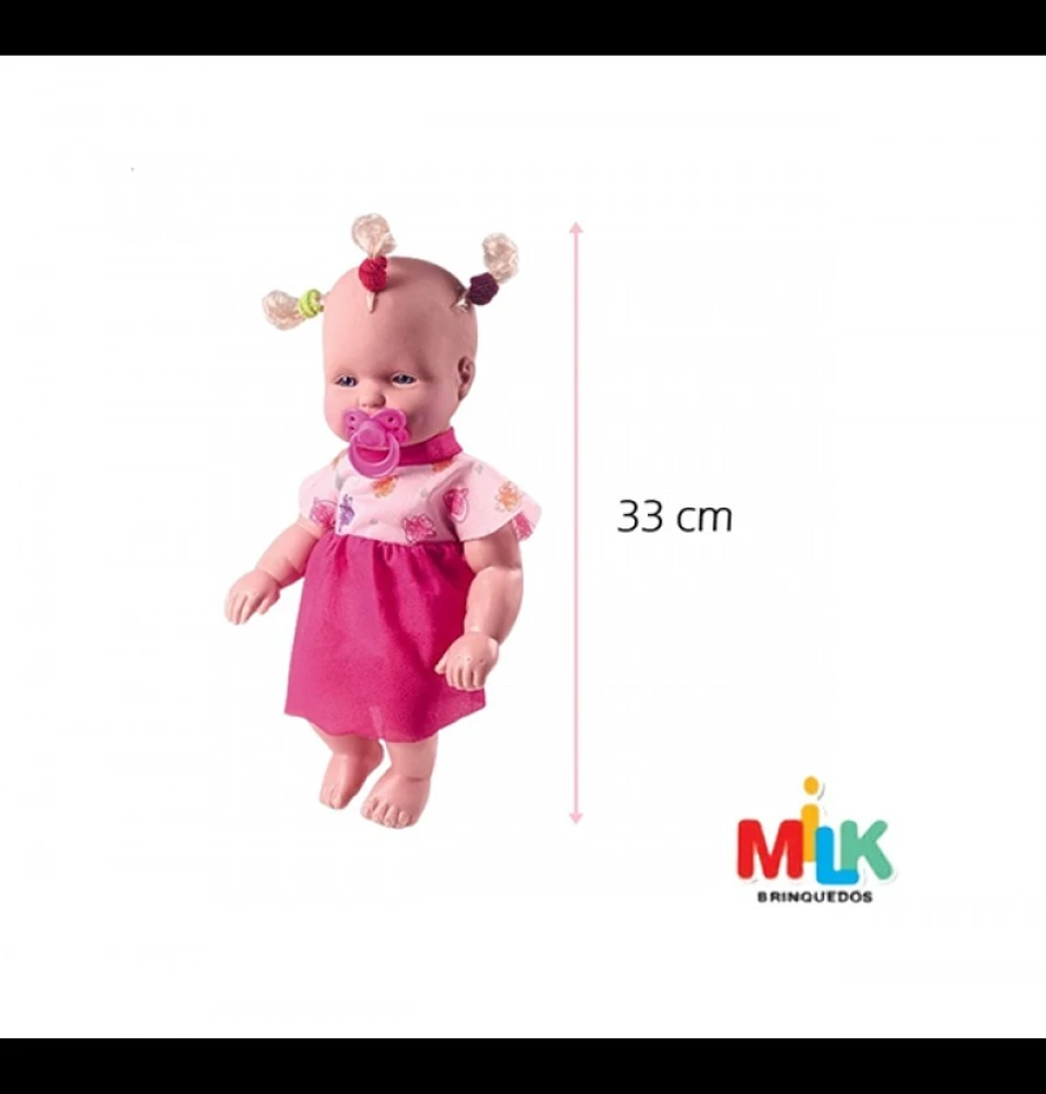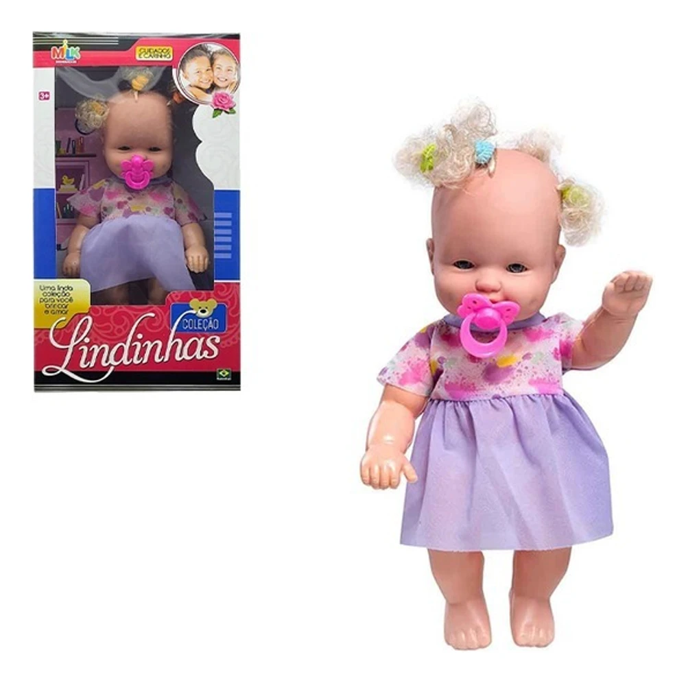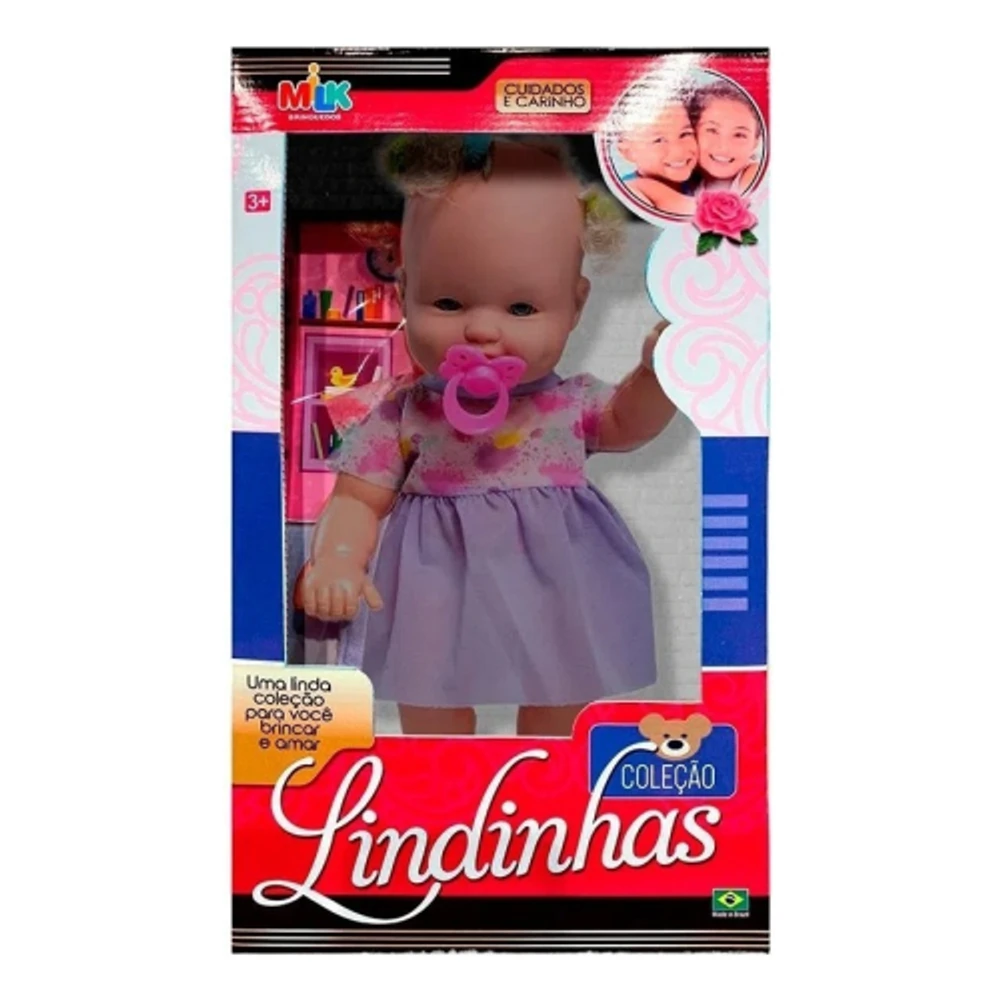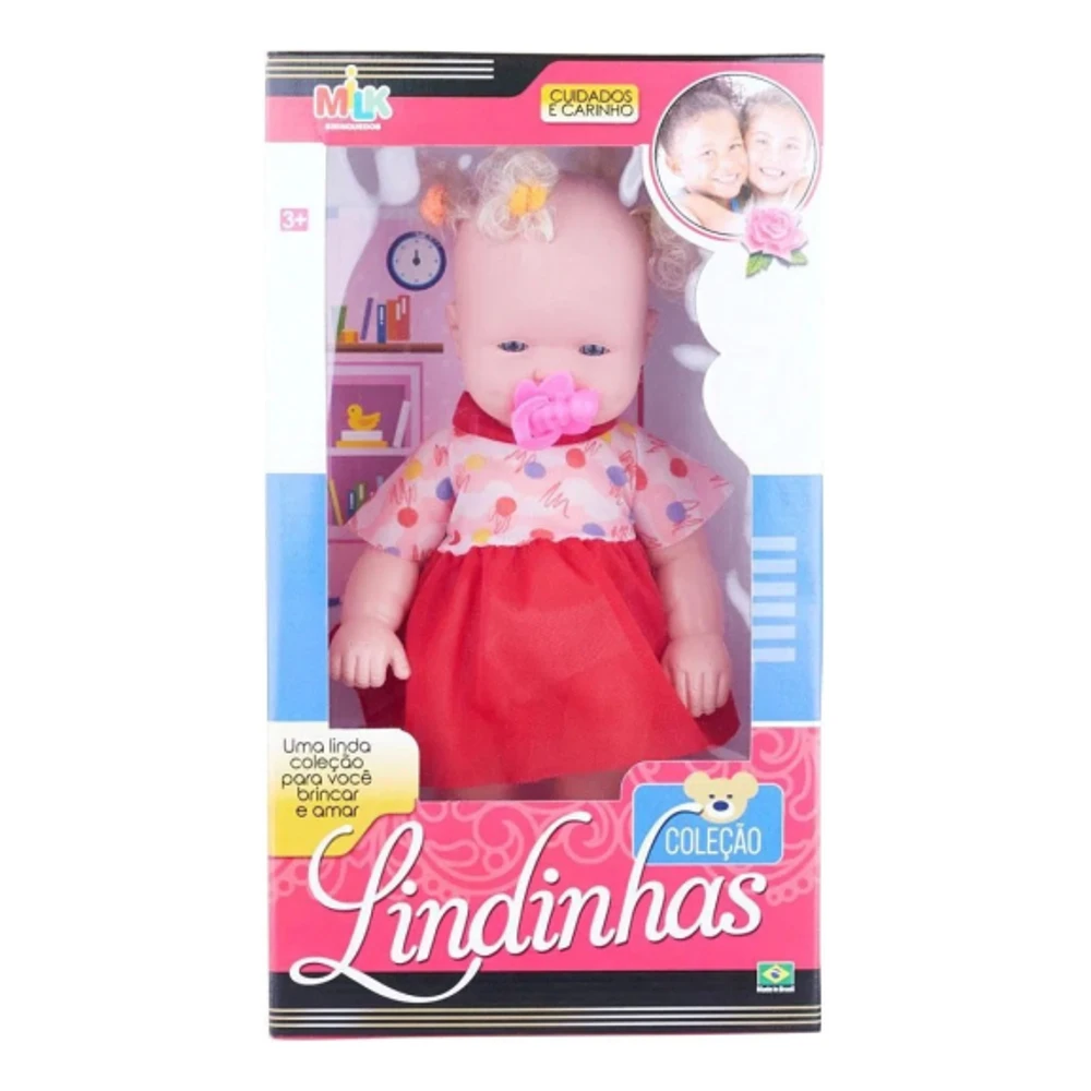 Brinquedo Infantil Boneca Colecao Lindinha MilkA Boneca Coleção Lindinhas da Milk é um bebê super fofinho e precisa dos cuidados de uma menina muito amorosa! Além de ser fofinha, ela precisa de muita atenção e carinho, afinal, ela é um neném. Toda menina vai querer cuidar de uma dessa!BONECA LINDINHA BRANCA 33CM REF 605 MILK BRINQUEDOSLEIA TODA A DESCRIÇÃO ANTES DE FINALIZAR A COMPRAA Boneca lindinha branca é um lindo bebê para você brincar é muito divertida!As meninas vão se encantar com este lindo bebê. Ela faz a brincadeira se tornar ainda mais divertida. Ela é linda e muito fofinha. Feita com materiais de qualidade.Especificações complementares:MARCA: Milk brinquedosMODELO: Lindinha branca 33cmCOR: NegraREF: 605COMPOSIÇÃO:MATERIAL DO CORPO: Vinil e PlásticoMATERIAL DA CABELO: PolipropilenoMATERIAL DA ROUPA: TecidoIDADE: Acima de 3 anosPESO: 396gCONTEÚDO DA EMBALAGEM:01 Boneca lindinha branca01 Chupeta04 Gominha01 VestidoDIMENSÕES DO PRODUTO (AxLxP): AL41 x L23 x P9GARANTIA: 1 mês contra defeito de fabricaçõesINSTRUÇÕES/CUIDADOS: *Não recomendável para menores de 3 anos por conter peças pequenas que podem ser engolidas*