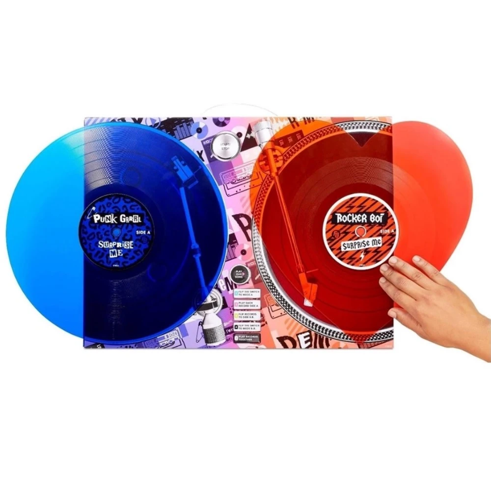 Inclui 2 discos em tamanho real que você pode girar para realmente tocar música.
