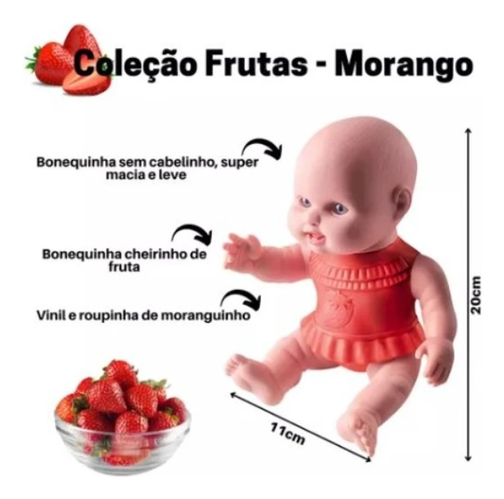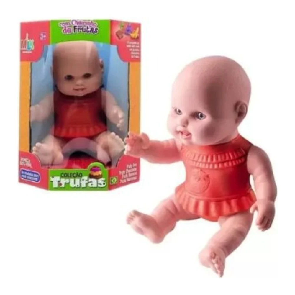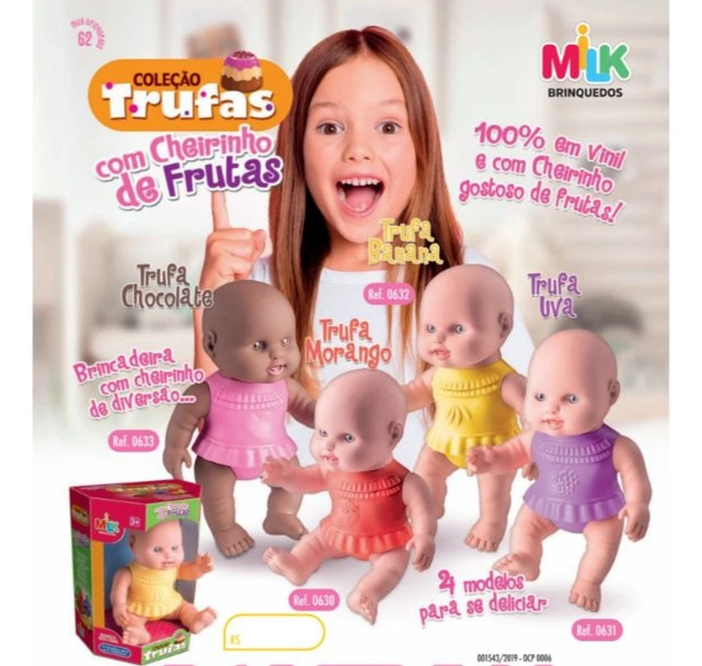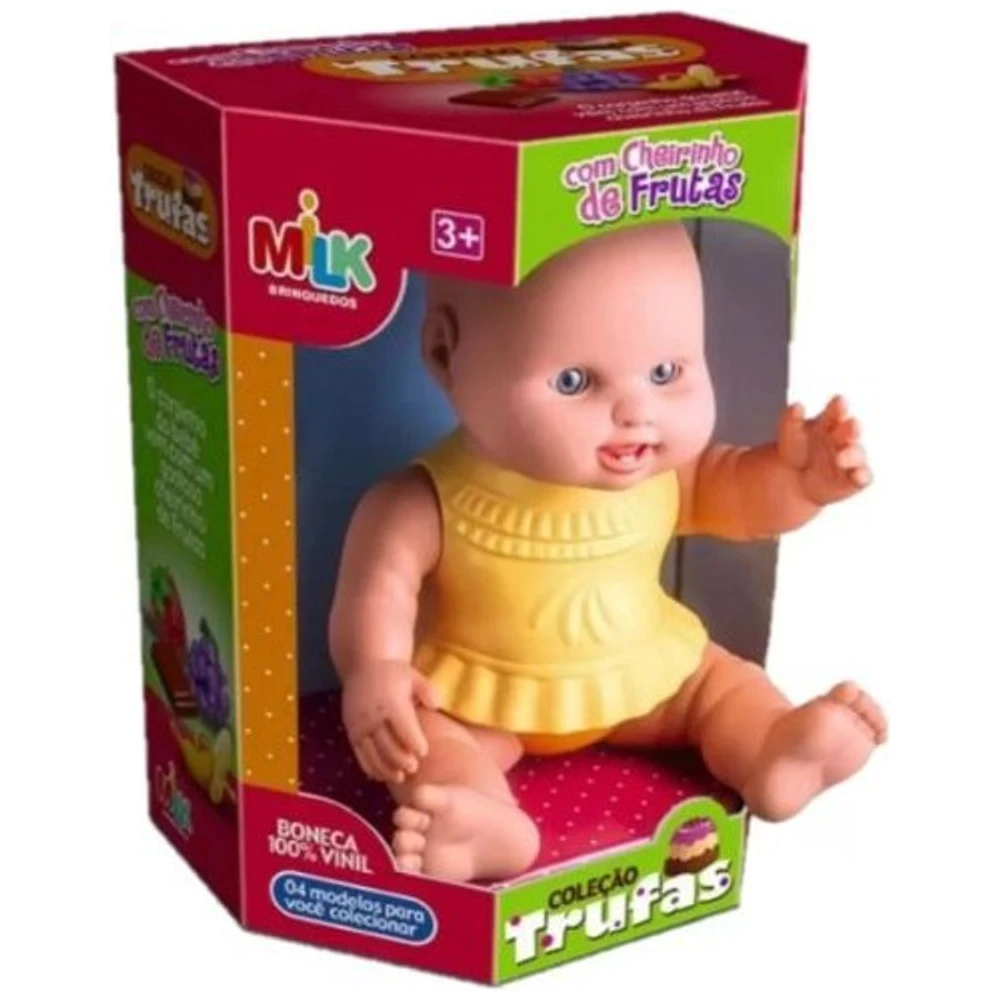 BONECA COLEÇÃO TRUFAS ? MILK BRINQUEDOSUau...Uma amizade fiel...A partir de hoje, toda criança será acompanhada por alguém incondicional, capaz de transformar o mundo em um lugar encantador.A Coleção Trufas com Cheirinho de Fruta chegou com lindas bonecas para a diversão da criançada!A bonequinha 100% em vinil macio, com um delicioso cheirinho da frutinha que representa.Personagens inesquecíveis.Com boneca coleção trufas, as experiências das crianças serão incríveis!Seu design favorece a criatividade e a imaginação.As crianças vão se apaixonar por esse bebê!BENEFÍCIOS: Estimula a interação entre pais e filhos, desenvolve a coordenação motora, o equilíbrio, raciocínio lógico, a distinção de formas e cores, trabalha a lateralidade, as noções de espaço, o desenvolvimento social e cultural, a criatividade e atividade.Desenvolve a criança num todo!ESPECIFICAÇÕES:Marca: Milk BrinquedosPersonagem: Coleção Frutas com Cheirinho de FrutasMaterial: VinilIdade: +03 anosAltura: 20cmLargura: 11cmCom Som: NãoCom Pilha: NãoCom Luz: NãoMEDIDAS DA EMBALAGEM:Altura: 20cmLargura: 11cmComprimento: 16cmPeso: 264g