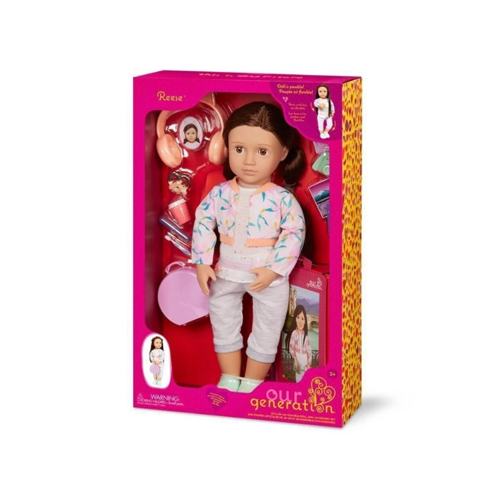 Conheça as encantadoras Bonecas Our Generation, uma opção perfeita para brincadeiras criativas e imaginativas. Com aproximadamente 46cm de altura, essas bonecas cativantes apresentam uma diversidade de estilos e personalidades.Our Generation vai além de ser apenas uma boneca. É um mundo de possibilidades para crianças de todos os estilos e gostos. Com nossas bonecas, conjuntos de roupas e acessórios incríveis, incentivamos a imaginação e o desenvolvimento de histórias únicas.Our Generation: essa é a nossa história, e essa é a nossa turma!Tenha noites de festa do pijama e momentos de relaxamento no spa com Larissa! Esta boneca da Our Generation tem um corpo macio, perfeito para abraços, e características realistas que encantam os fãs de bonecas. Seus cabelos castanhos escuros ondulados são divertidos de pentear, enquanto seus lindos olhos castanhos se fecham para uma noite de sono tranquila. Larissa chega vestindo um adorável pijama de gatinho e chinelos fofos. Além disso, ela vem com acessórios de festa do pijama, como um saco de dormir com tema de gatinho, uma tigela de pipoca, biscoitos, um copo de leite com chocolate, esmaltes de brincadeira e uma máscara facial com rodelas de pepino. Com fechos de abertura fácil, trocar de roupa é rápido e fácil, permitindo criar looks estilosos para qualquer aventura!Itens Inclusos:- Boneca de 46cm- 1 roupa de pijama- 1 par de chinelos- 1 par de cuecas- 1 saco de dormir- 1 tigela de pipoca- 2 biscoitos- 1 copo de leite achocolatado- 2 frascos de esmalte de mentira- 1 máscara facial- 2 rodelas de pepino