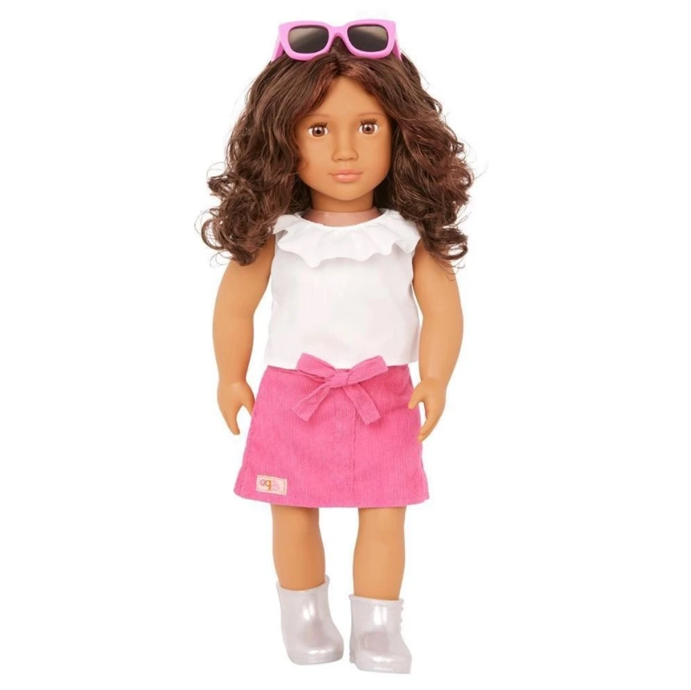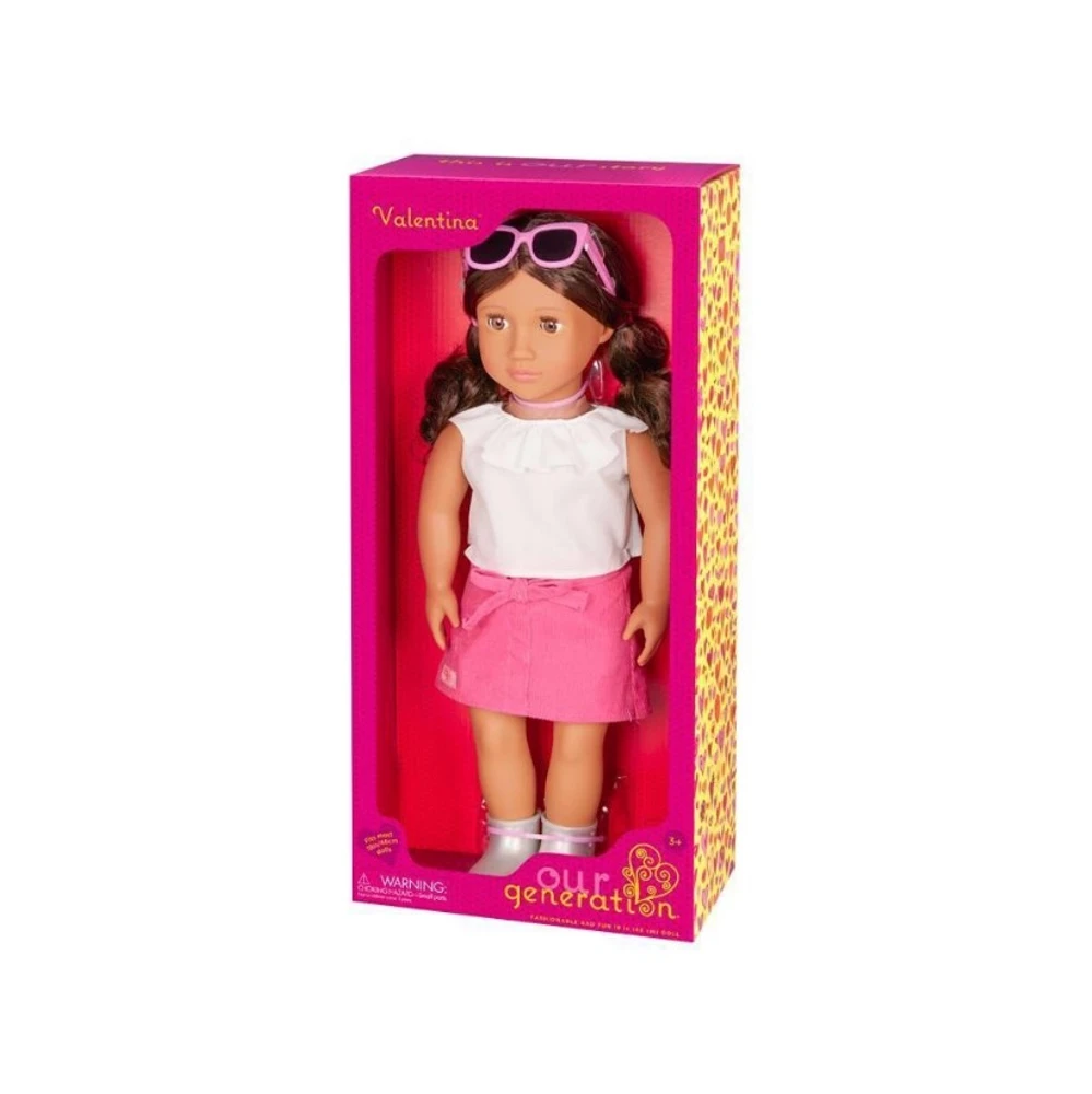 Conheça as encantadoras Bonecas Our Generation, uma opção perfeita para brincadeiras criativas e imaginativas. Com aproximadamente 46cm de altura, essas bonecas cativantes apresentam uma diversidade de estilos e personalidades. Our Generation vai além de ser apenas uma boneca. é um mundo de possibilidades para crianças de todos os estilos e gostos. Com nossas bonecas, conjuntos de roupas e acessórios incríveis, incentivamos a imaginação e o desenvolvimento de histórias únicas. Our Generation: essa é a nossa história, e essa é a nossa turmaExplore estilos doces e diversão na moda com Valentina Esta boneca Our Generation é pura alegria Seus olhos castanhos brilham, e seus cabelos escuros e ondulados são uma tela para criar penteados incríveis Valentina arrasa com sua saia rosa com laço, blusa com gola de babados, botinhas e óculos de sol cor-de-rosa. é só diversão Com fechos fáceis, é fácil trocar de roupa e criar looks estilosos para qualquer aventuraItens Inclusos: - Boneca de 46cm- 1 top- 1 saia- 1 par de botas- 1 óculos de sol