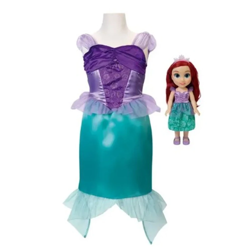 Entre na fantasia e vista-se como a sua princesa favorita, Ariel, com o conjunto Boneca Ariel e Vestido de Princesa!Compartilhe aventuras mágicas ao lado da boneca Ariel, vestida em seu icônico vestido de sereia e braços e pernas articuladas.
