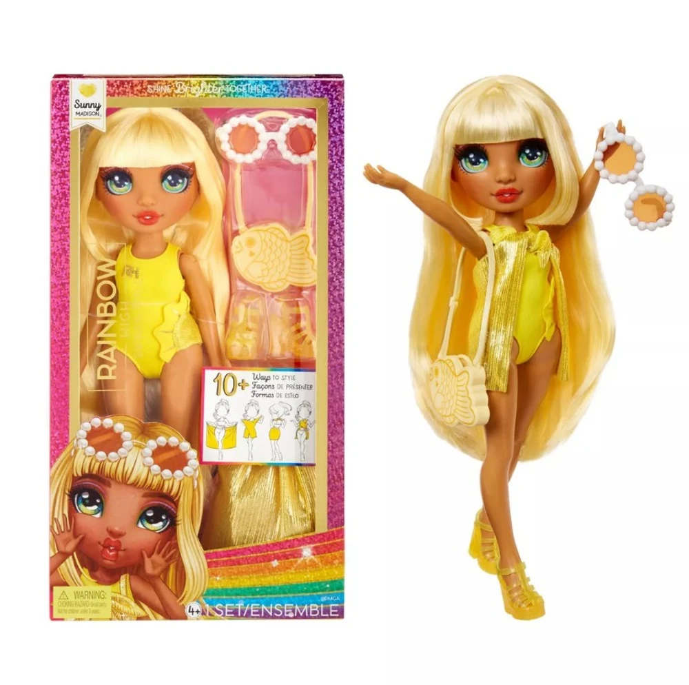 Deixe suas cores verdadeiras BRILHAR!? Assim como um arco-íris, a marca Rainbow High? Fashion Doll é uma marca de brinquedos única que inspira as crianças a serem únicas. A linha de bonecas coloridas, distintas e inclusivas incentiva as crianças a serem criativas em suas histórias, sua arte e suas personalidades, sendo sempre fiéis a quem elas querem ser. ASSISTA NO YOUTUBE E NETFLIX: Assista à série animada no YouTube e Netflix! Basta pesquisar por ?Bonecas Rainbow High?. NADAR E ESTILAR TODOS: Colecione e brinque com Ruby, Sunny, Skyler e Violet.