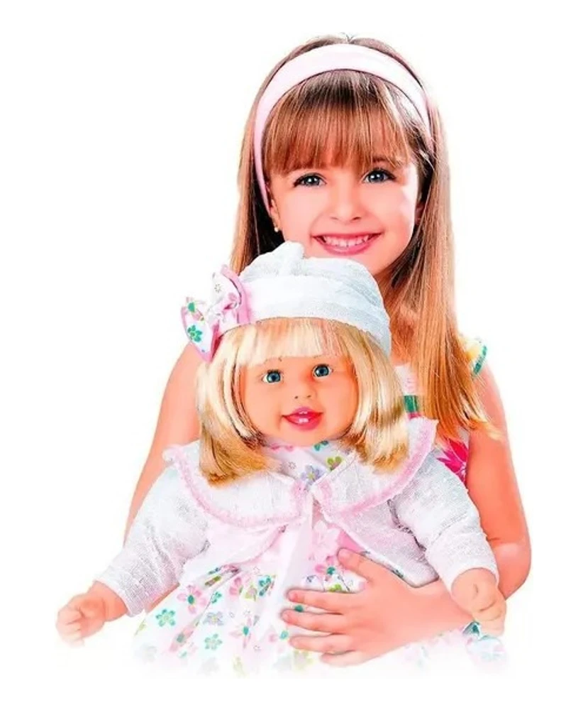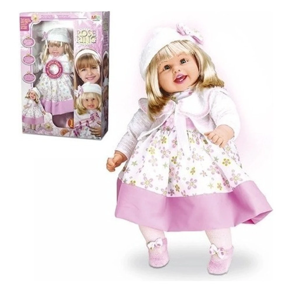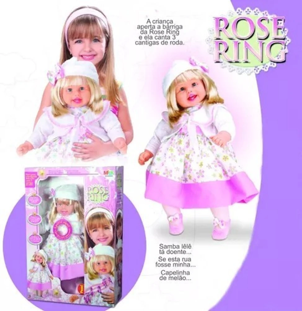 BONECA BEBE ROSE RING CLASSIC CANTIGA DE RODASA Bebezinha mais fofa chegou para deixar suas brincadeiras ainda mais divertidas! A Boneca Bebê Rose Ring Classic é cheia de detalhes que vão encantar você, ela canta 3 cantigas de roda, seu corpinho é todo macio, as mãozinhas e pezinhos são com dobrinhas e furinhos como um bebezinho, Acompanha gorrinho, meinha e a roupinha é toda decorada. Tudo isso para você se divertir, sendo mamãe. Divirta-se em qualquer lugar com sua bebezinha Rose Ring Classic!*BENEFICIOS: Estimula a interação entre pais e filhos, estimula a criatividade, é sensorial, estimula a imaginação, desenvolve a fala, a comunicação, a afetividade, a coordenação motora, o reconhecimento de formas e cores, a interação social e cultural, brincando, desenvolve-se a criança num todo!*INFORMAÇOES TECNICAS:Idade Mínima Recomendada: + 3 anosDimensões Aproximadas da Embalagem (AxLxC): 33cm x 26cm x 46cmDimensões Aproximadas da Boneca: 40cm alturaMaterial Composição: Corpo enchimento / Cabeça Braços e Pernas VinilAbre/Fecha olho: NãoArticulada: NãoPode Molhar: NãoSom: Sim, 3 cantigas de rodaPilha/Bateria: 3 AG13/LR44Luz: NãoFabricante: Milk BrinquedosINMETRO REGISTRO 001524/2019Conteúdo da Embalagem: 01 Boneca