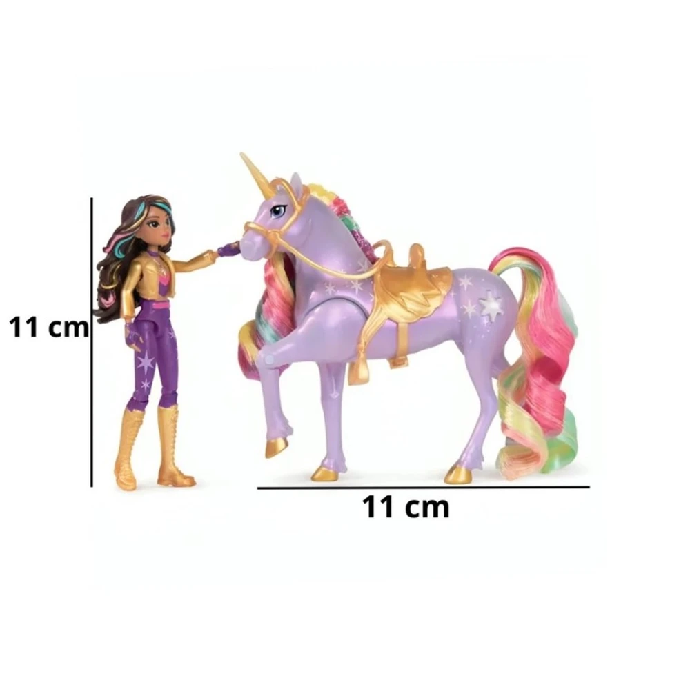 Com a nova linha de Unicorn Academy, você terá uma experiência única e especial ao lado de Sophia e seu unicórnio exclusivo, mergulhando em uma diversão mágica com uma figura encantadora. A figura de Sophia é totalmente personalizada, com detalhes únicos para encantar qualquer fã, garantindo uma conexão emocional com esta personagem cativante. Além de detalhado, o unicórnio pode emitir luzes brilhantes, adicionando um toque extra de magia e encantamento a cada brincadeira. Prepare-se para se encantar com esta figura mágica e suas características especiais, trazendo a magia do mundo da Unicorn Academy para sua própria casa. Embarque em aventuras inesquecíveis com Sophia e seu unicórnio único, explorando um mundo de magia e diversão sem limites nesta emocionante jornada da Unicorn Academy.