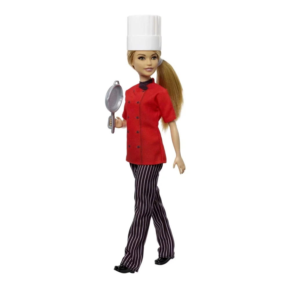 Cada embalagem traz uma Barbie com uma profissão surpresa — como médica, astronauta, chef, bombeira ou muitas outras! A boneca vem com um look temático removível e acessórios relacionados à carreira, tornando a brincadeira ainda mais realista e educativa.