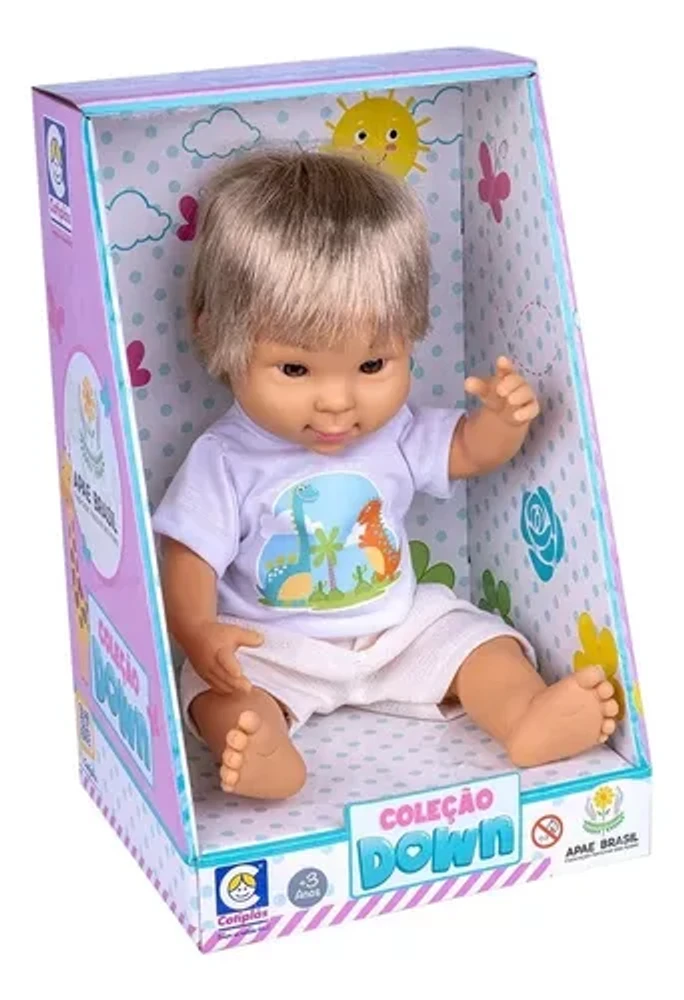 O Boneco Cotiplas Down Menino Loiro é um brinquedo inclusivo que promove empatia e autoestima. Com corpo macio, delicado e cheirinho suave de talquinho, é feito em vinil atóxico com articulações nos braços, pernas e cabeça, tornando a brincadeira interativa e divertida. Desenvolvido para representar crianças com síndrome de Down, permite que elas se vejam espelhadas nos brinquedos, fortalecendo a confiança e mostrando que cada pessoa é única.