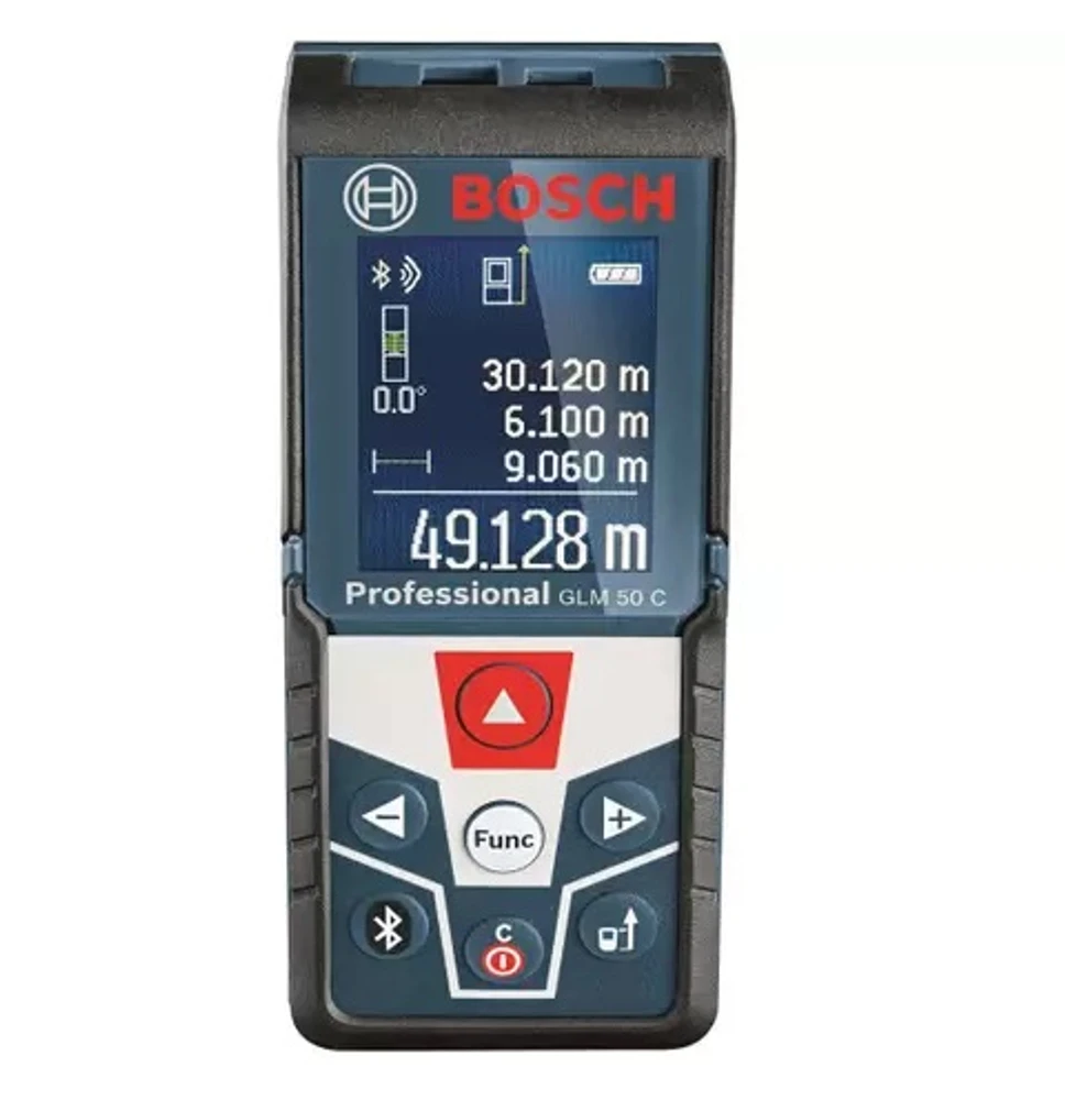 Conectividade para medições inteligentes. A GLM 50 C Professional é um dos destaques da linha de medição da Bosch. Com alcance de 50 metros e memorização automática dos últimos 30 resultados de medição, esta trena a laser pode ser conectada aos aplicativos GLM measure&document e GLM Floor Plan, facilitando a transferência, via Bluetooth, dos valores medidos diretamente para o computador, tablet ou smartphone.Outro diferencial desta nova ferramenta é a função Stake-Out. Com ela o usuário tem a possibilidade de definir uma medida para que a trena emita um aviso sonoro quando o valor determinado é alcançado, facilitando ainda mais o serviço que está sendo realizado. De fácil manuseio e com proteção contra poeira e água, a GLM 50 C Professional dispõe de tela colorida e rotativa, bem como a função de marcação para medição rápida de distâncias recorrentes. Além de contar com sensor de inclinação 360 graus integrado e realizar cálculo de área/volume, nível e ângulo.