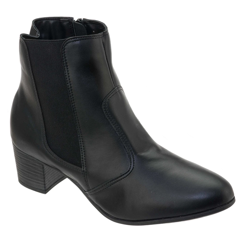 Bota Cano Curto em Couro ecológico com salto de 9 cm, e solado em borracha antiderrapante. Um modelo que compõem a atual coleção com estilo original e de bom gosto para encarar a temporada fria.