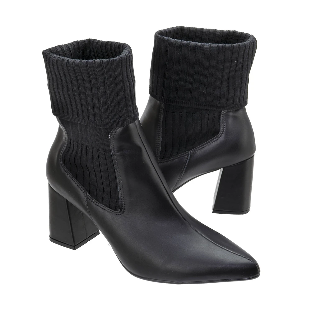 Produzida em couro ecológico e tecido, esta bota de cano médio (20 cm) combina elegância e conforto em um design sofisticado. Seu salto quadrado de 8 cm proporciona estabilidade e um toque de sofisticação, enquanto o solado em borracha garante aderência e segurança ao caminhar. Ideal para compor looks modernos e versáteis, é perfeita para diversas ocasiões.