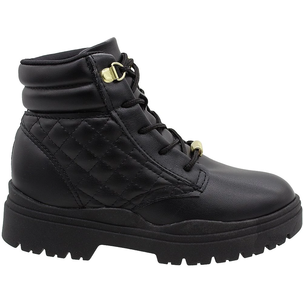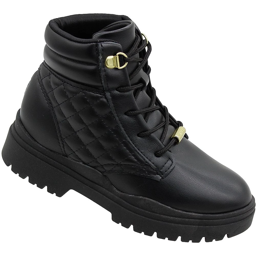 Bota Infantil Coturno Molekinha Cadarço Relief Tratorada Cano Médio Feminina