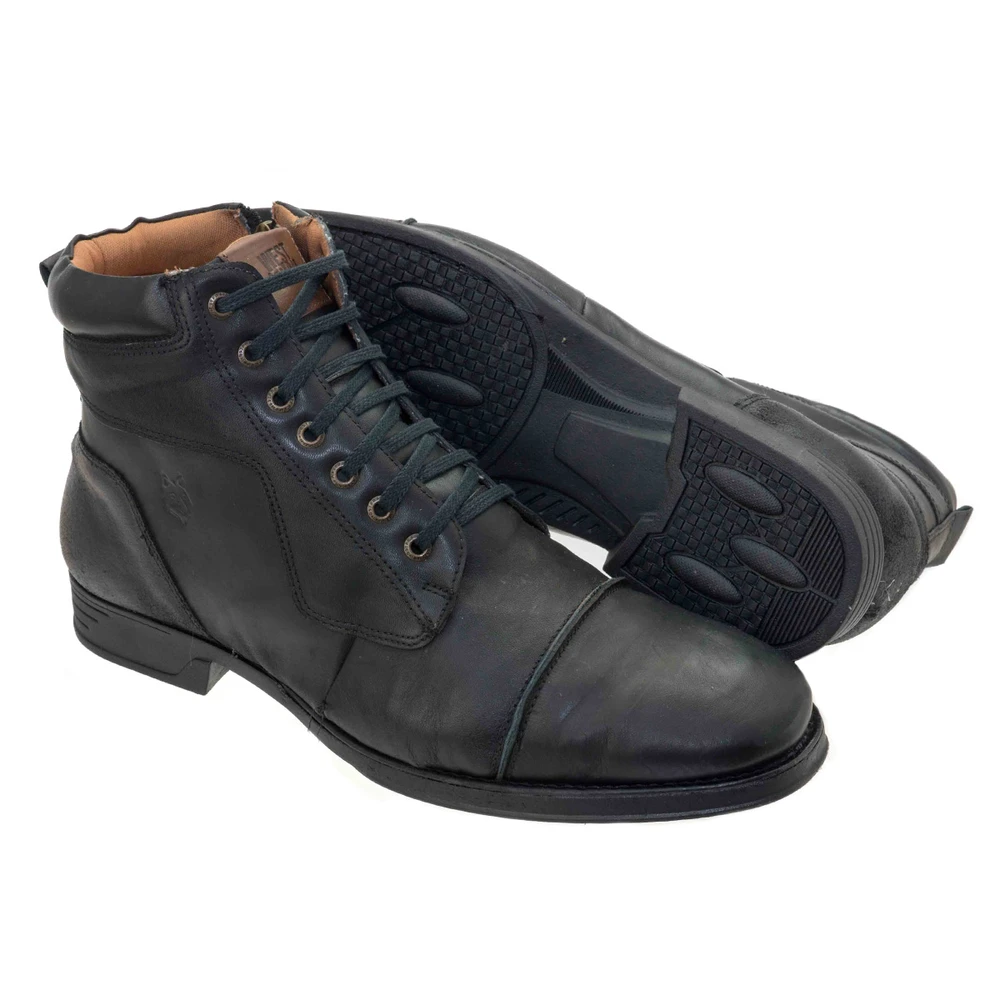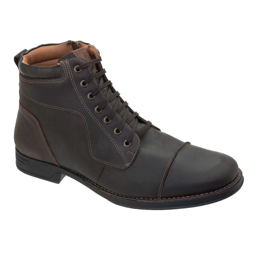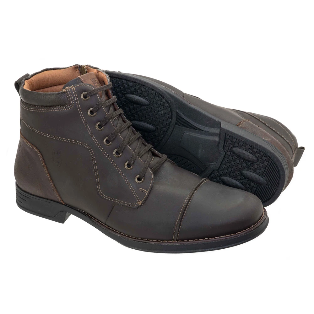 Botinha em couro com solado em borracha. Com ziper na parte interna do pé, toda costurada.