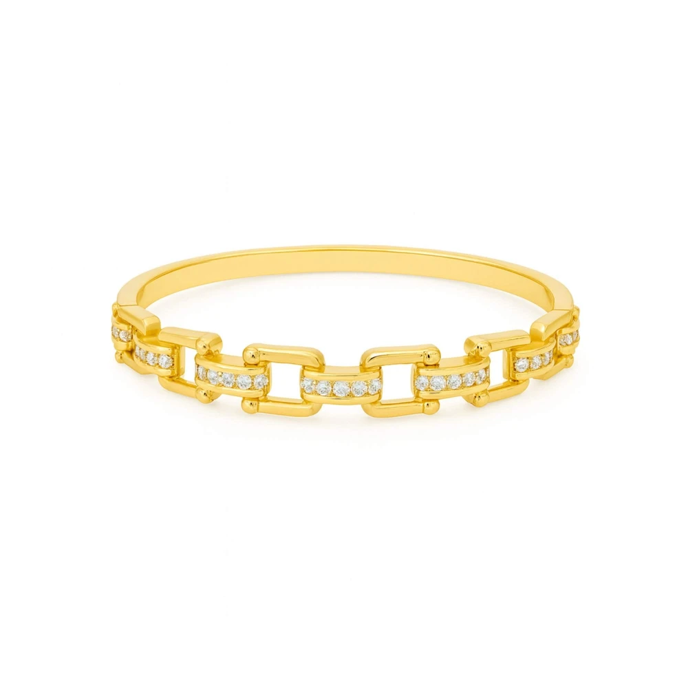 Bracelete Elos com Filetes Cravejados com Zircônias - Banhado em Ouro 18k