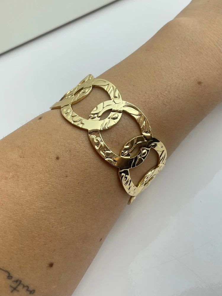 Bracelete Vazado Corrente Metálica – Dourado e Prata
