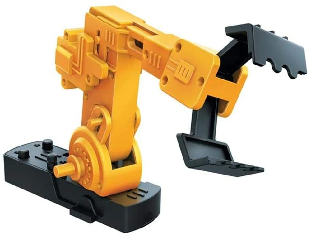 Este braço robótico sobe e desce, abre e fecha as garras de sua pinça. Construa o braço, em seguida, pressione os botões para agarrar, levantar e solar objetos.