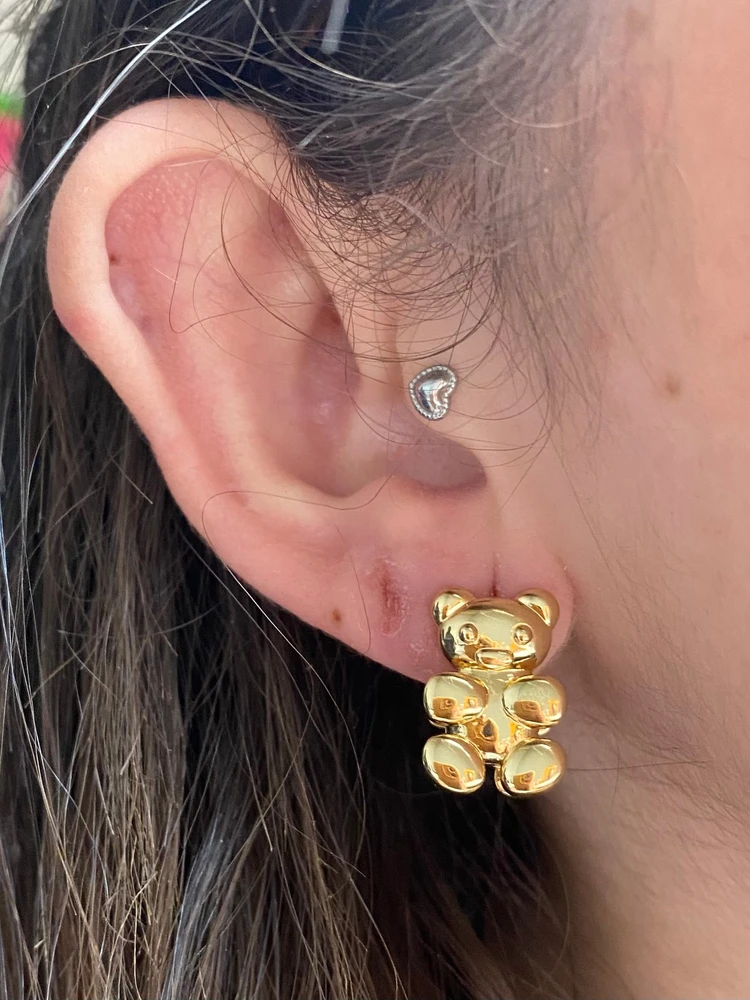 Esse brinco é pra quem ama a moda com significado. Um toque de infância, carinho e estilo — tudo em uma peça só. Usa com cabelo preso e deixa o urso brilhar!