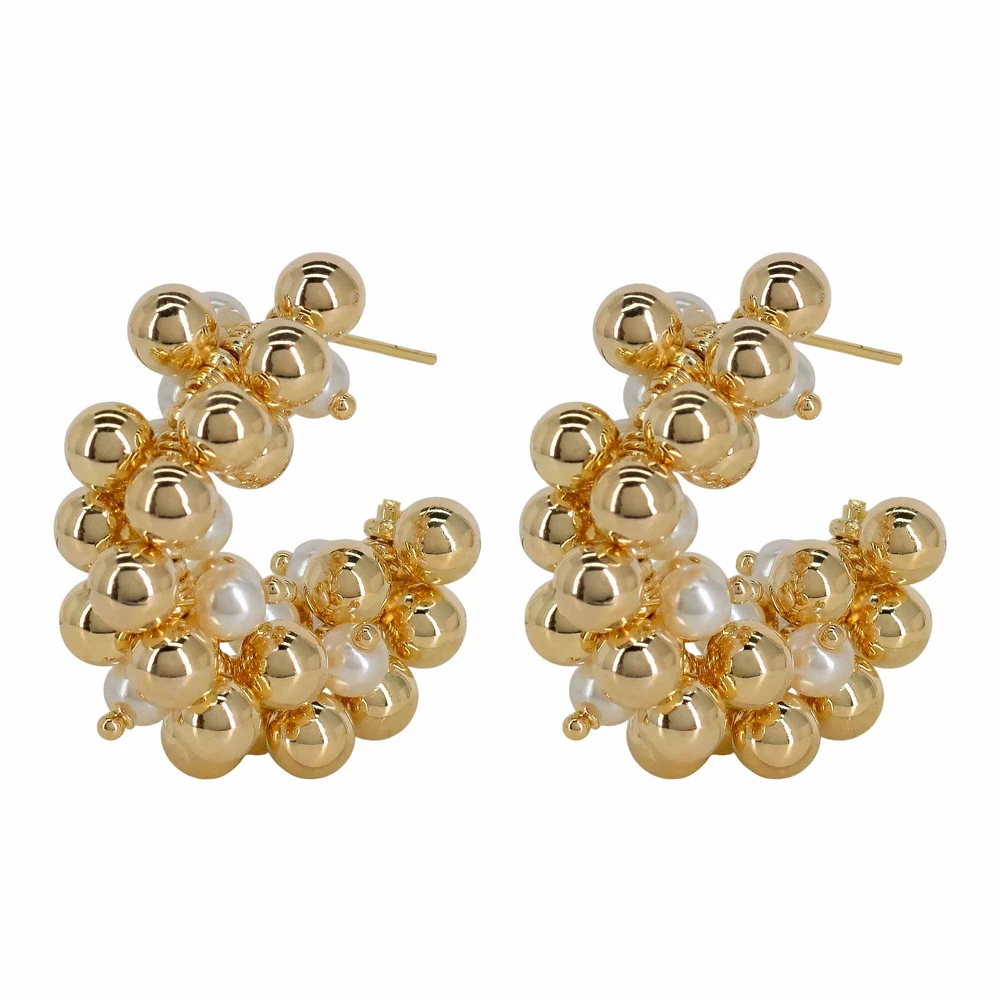 Descubra a elegância contemporânea com o Brinco Argola Esfera Pérola Banhado a Ouro 18K. Este brinco une o clássico da pérola com o luxo do banho em ouro 18K. Seu design com múltiplas esferas cria um efeito sofisticado e moderno, perfeito para destacar seu estilo.