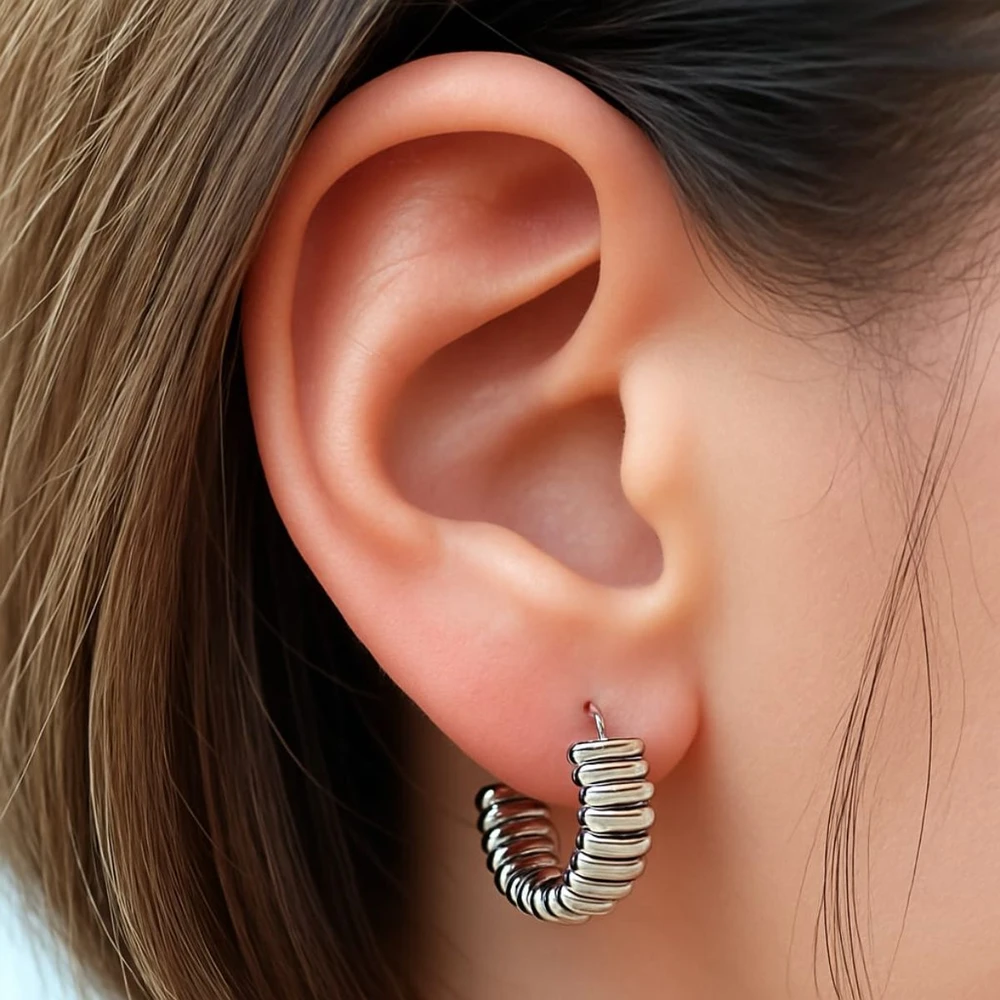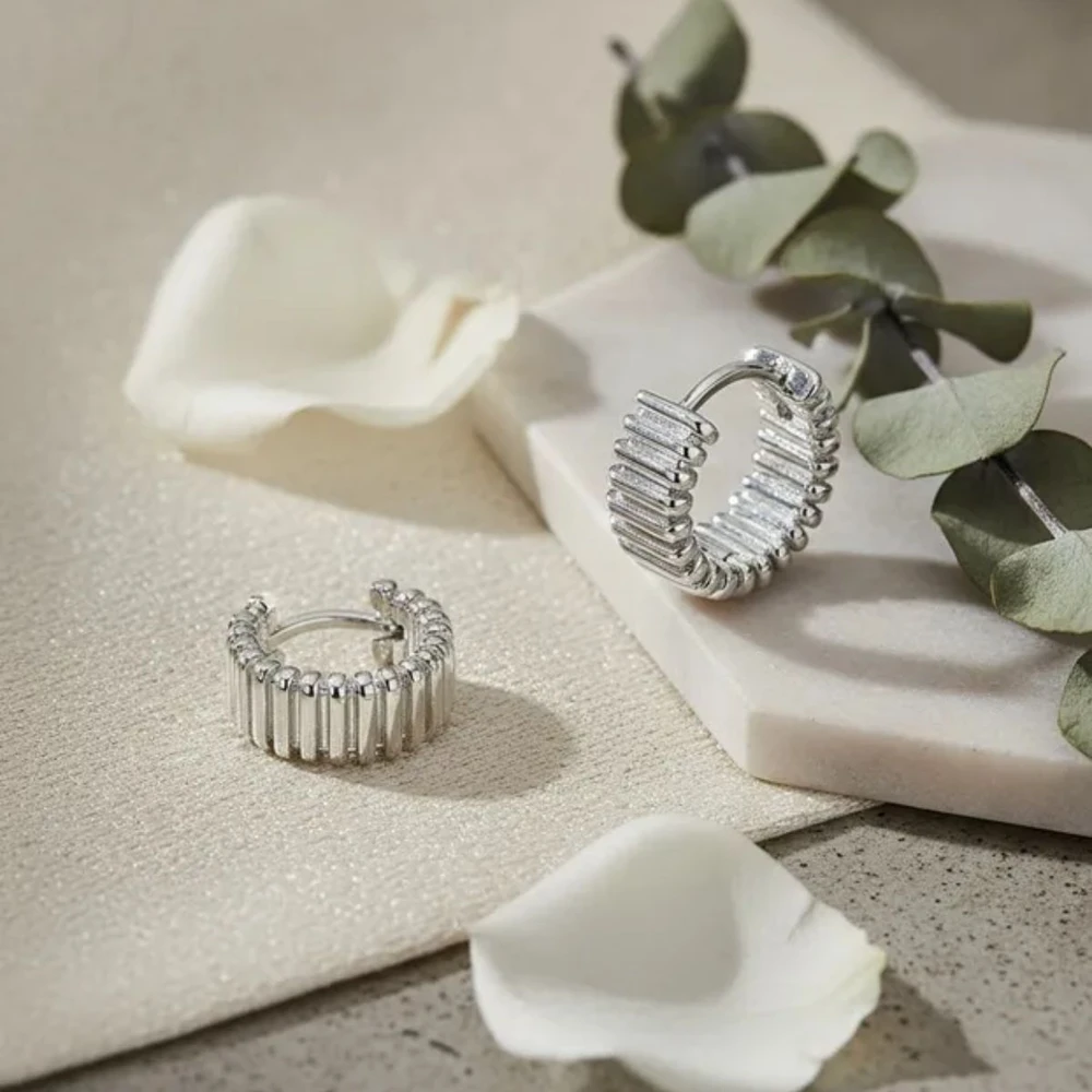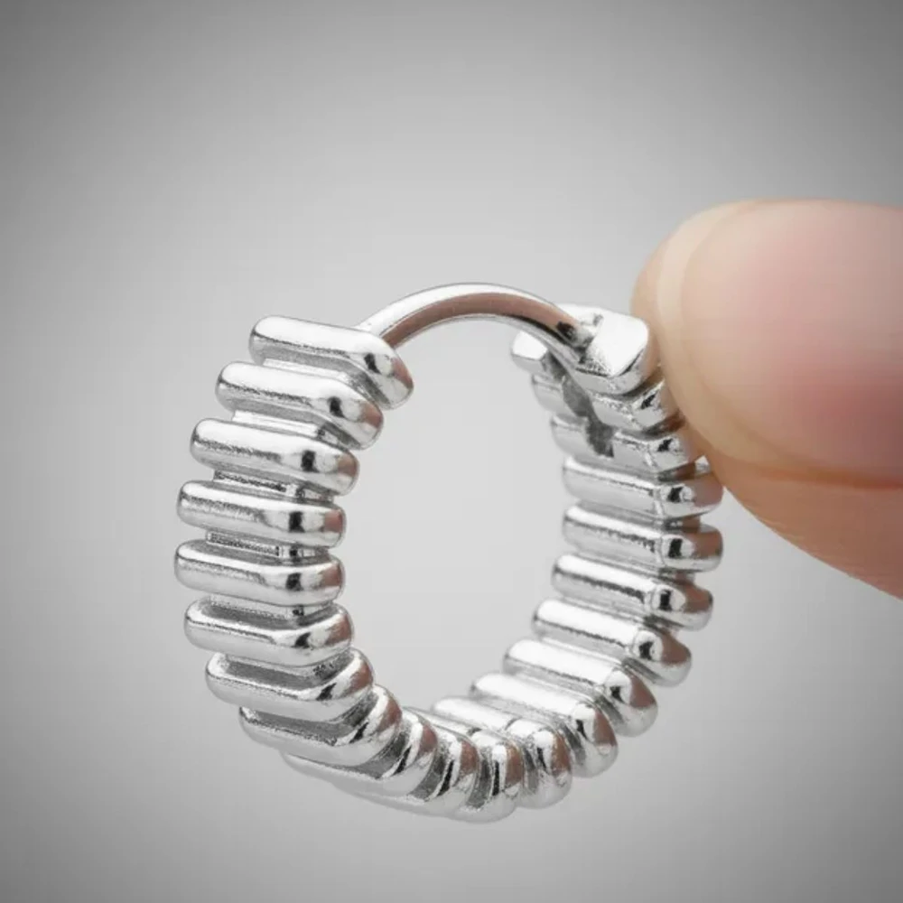 Argola trabalhada lisa banhada a ródio.