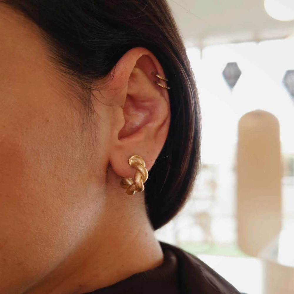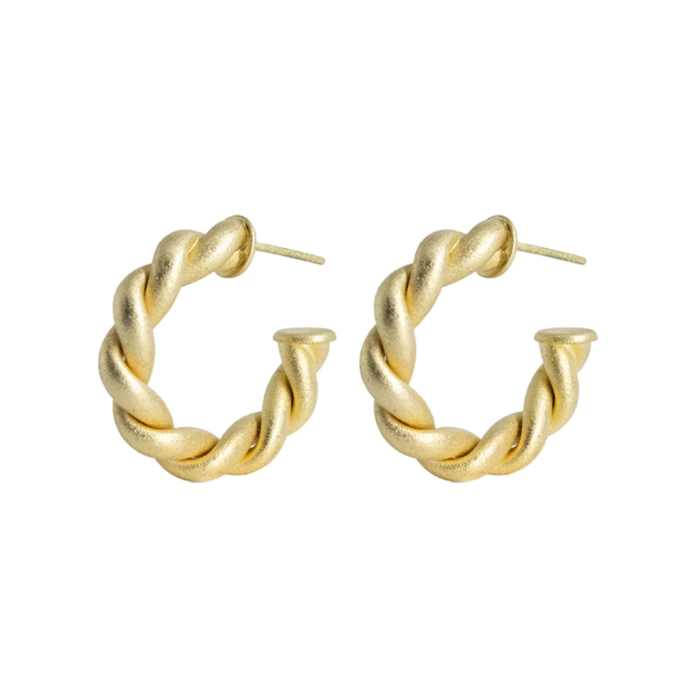 Brinco Argola Fio Torcido Fosco Tam P Banhado a Ouro 18K – Sofisticação e Estilo em Cada Detalhe